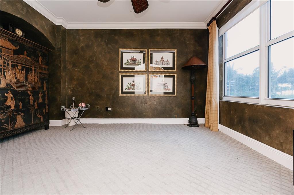 BEST OPPORTUNITY ON THE BEACH !This tastefully appointed 2 bed/2 bath corner unit is located in The Palms, a luxury oceanfront residence offering Private Beach access, Beach Attendants, Salt Water Heated Pool, 2 Story Full-Service Gym, Private Lounge, 24-Hour Security and Valet Services, Lap Pool, Racquetball Courts and Tennis. A semi private elevator opens to your foyer entrance ; 10" Volume Ceilings, Hurricane Impact Glass throughout, Marble Flooring, Venetian plastered walls, Crown Molding, Expansive Kitchen with Italian wood cabinetry and high end appliances, gorgeous Travertine tiled master bathroom with Jacuzzi tub and a vast walk in shower. The guest bedroom is used as a separate living area but can easily be converted back into a bedroom or office. Building is pet friendly.