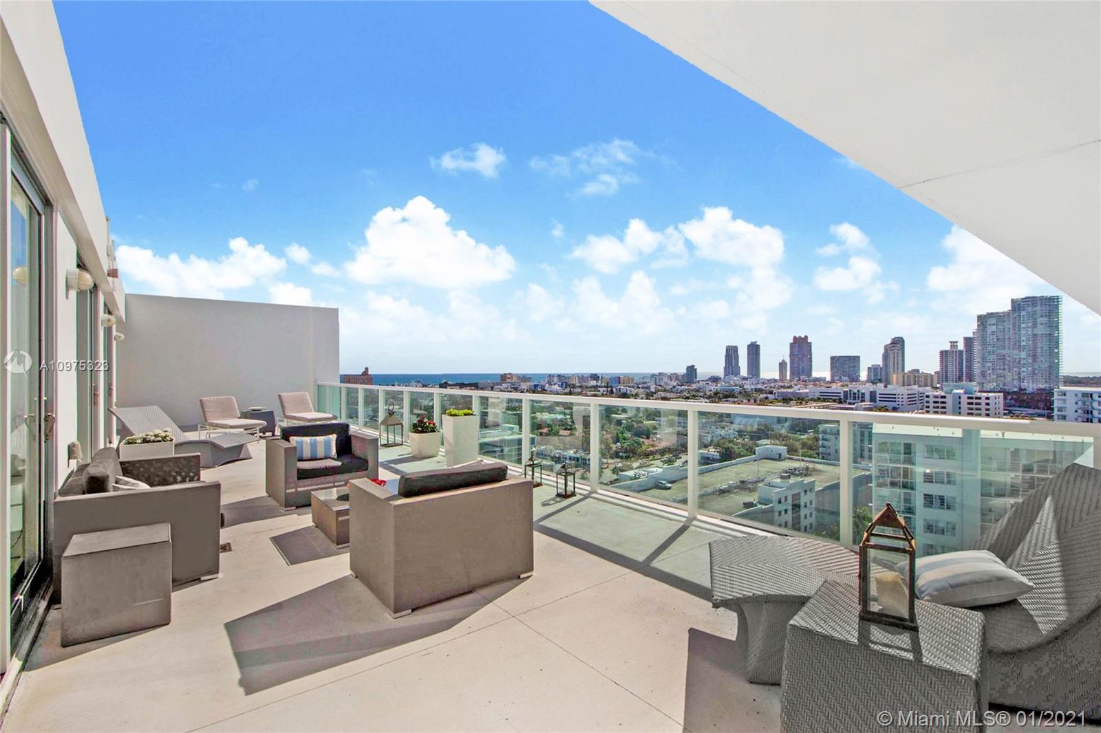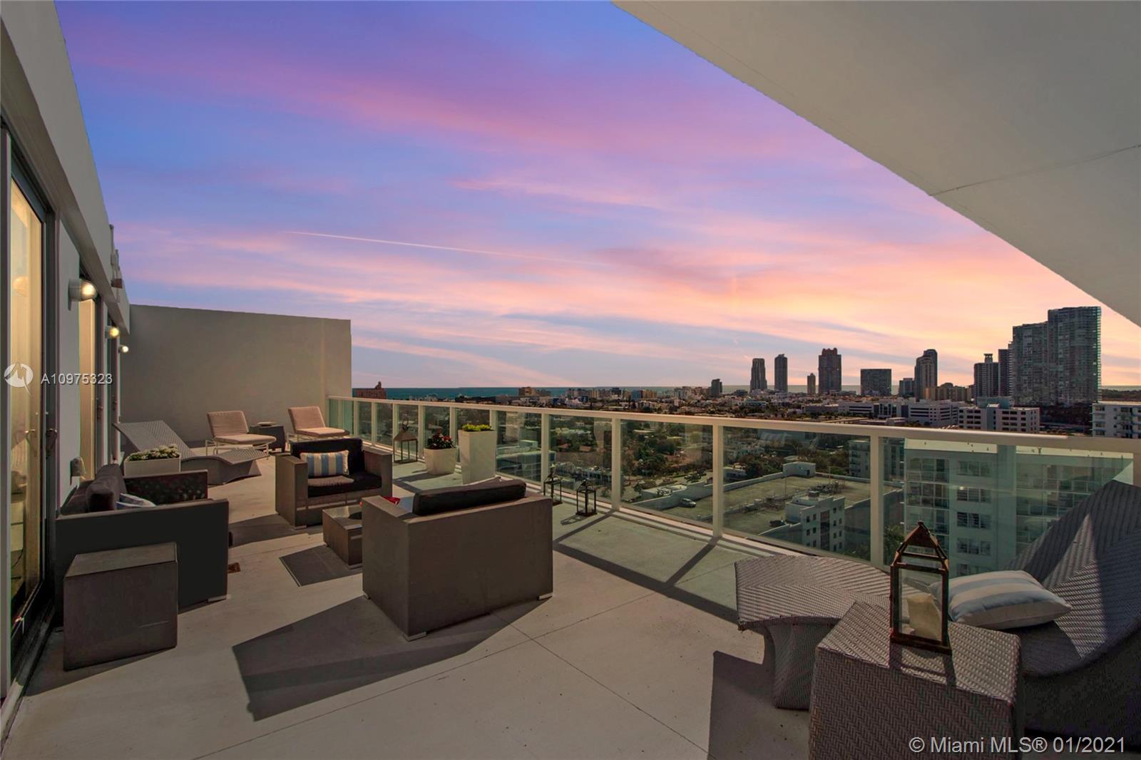 YOUR Home in the Sky. A STUNNING and UNIQUE Unit 3BR/2.5BA Tower Level Suite Unit with over 1600sf outdoor living space on So. Beach. 2,096sf of Lavish Interior space with 2 Amazing Wrap-Around Terraces -Spectacular Water and Skyline Views. PRIVACY: Only 8 units on the Tower Suite Level. Fully Renovated, Hurricane Impact Windows & Doors, Designer Bathrooms, Spacious Kitchen, Plenty of Storage and Closets and Marble Floors Throughout. Maintenance Includes: Hot Water, Garbage Removal, Cable, Internet, 5000+sf Fitness Center and Sauna. Walk to Wholefoods, Walgreens, Restaurants, Lincoln Rd. Within 15 minutes of Miami Intl. Airport, Wynwood, Design District, Downtown Miami, Museums, Entertainment and Arts District. Be AMAZED, Schedule A Showing Today.