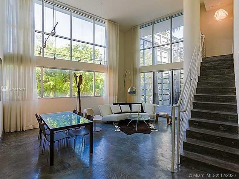 Unique Corner Loft in South of Fifth. 20-foot ceilings in a dramatic layout, featuring floor to ceiling glass windows/doors which open to an oversized, private terrace. The Master bedroom is upstairs. Boutique building with only 16 units. Rooftop lounge & pool, currently under renovation. Open design lobby.