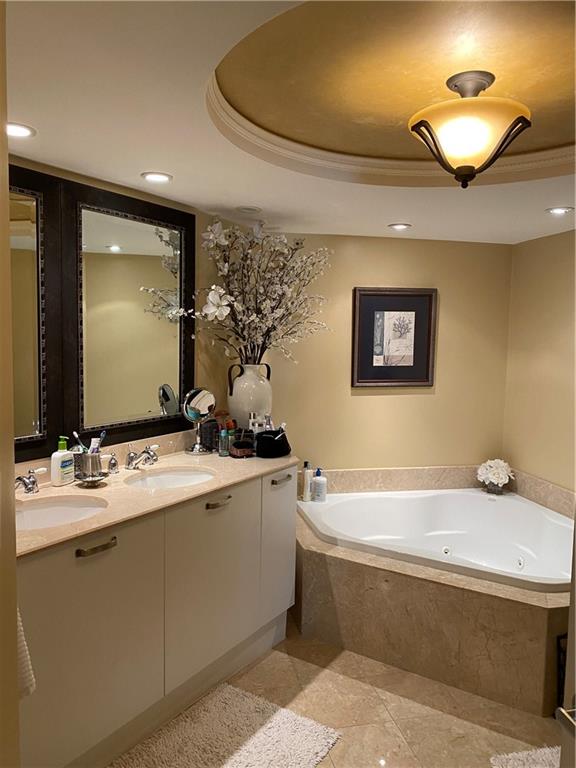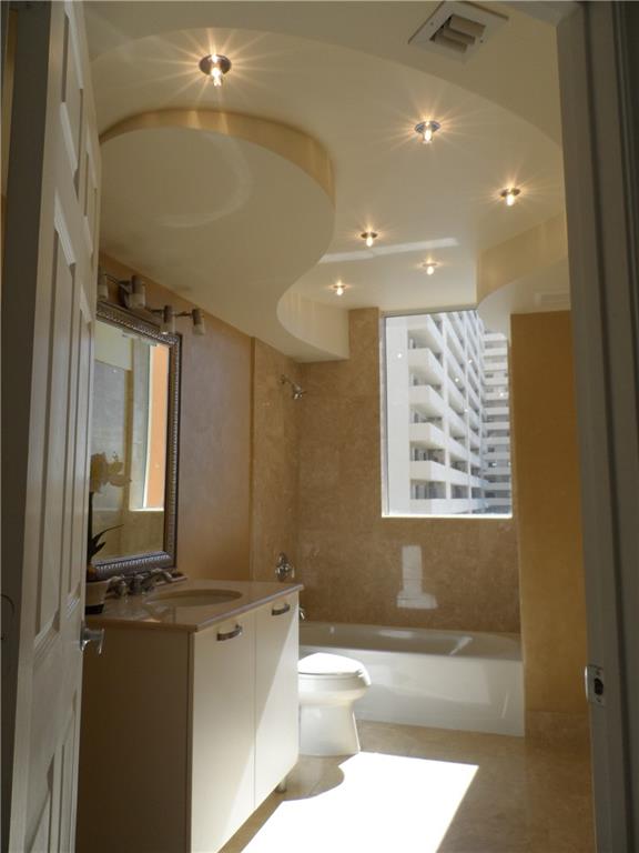 Beautiful bright SE corner 2 bedroom / 2 bath + DEN. Must see, one of the nicest units in the building. Custom plan with many designer touches: light stone floors with glass inlay, raised decorative ceilings, Swarovski lighting, custom closets, granite counters, bonus large pantry/ linen closet. Wrap around balcony with stunning ocean and intracoastal views. Private ocean front beach club with pool, whirlpool spa, poolside grill, and beach access. 2nd pool and spa between towers, fitness facility, billiard room, desk attendant, valet, 2 prime garage spaces. Great Location. Bayview School district. Pets welcome