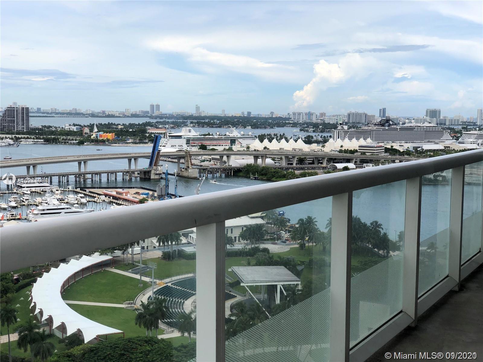 BEAUTIFUL CORNER 2 BEDROOMS 2 BATHS SPLIT PLAN. HUGE WRAP AROUND BALCONIY WITH AMAZING CITY, BAY AND PORT OF MIAMI VIEWS. 24 X 24 MODERN LIGHT FRAY THROUGH OUT. LARGE BEDROOMS WITH BATHROOMS AND WALKING CLOSETS WITH DIRECT ACCESS TO WRAPROUND BALCONY. GREAT AMENITIES! BEST LOCATION IN FRONT OF BAYFRONT PARK, WALK TO BAYSIDE, RESTAURANTS, AA ARENA, RESTAURANTS.... TENANT OCCUPIED UNTIL OCTOBER 2021, RENTED AT $2,650.00.