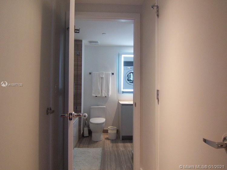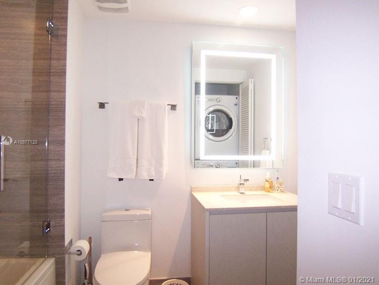 Lovely 1BR in great location. Lowest priced 1BR in the building. Modern Kitchen, Wood look Ceramic Flooring, Full Sized washer/dryer in the unit. High floor makes for great city view. Walking distance to great restaurants, shopping, train; easy access to airport and beaches. Great amenities: Turkish steam bath, 2 story racquet ball court, basketball court, 2 pools, including rooftop pool with rooftop bar! This unit includes a storage unit, #40. Building allows showings Monday, Friday, Saturday 11-5.