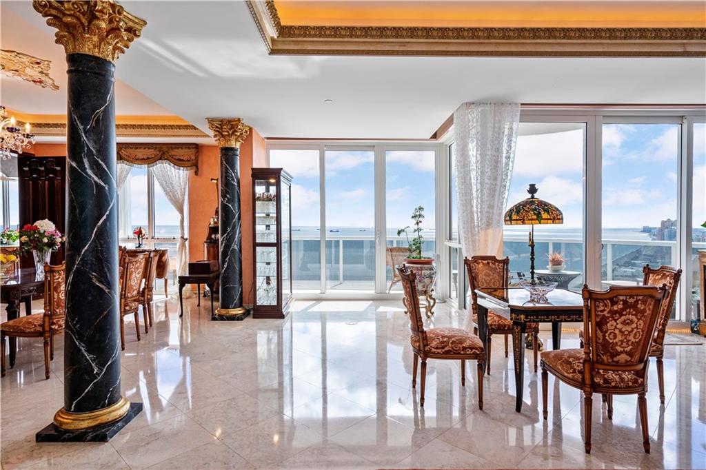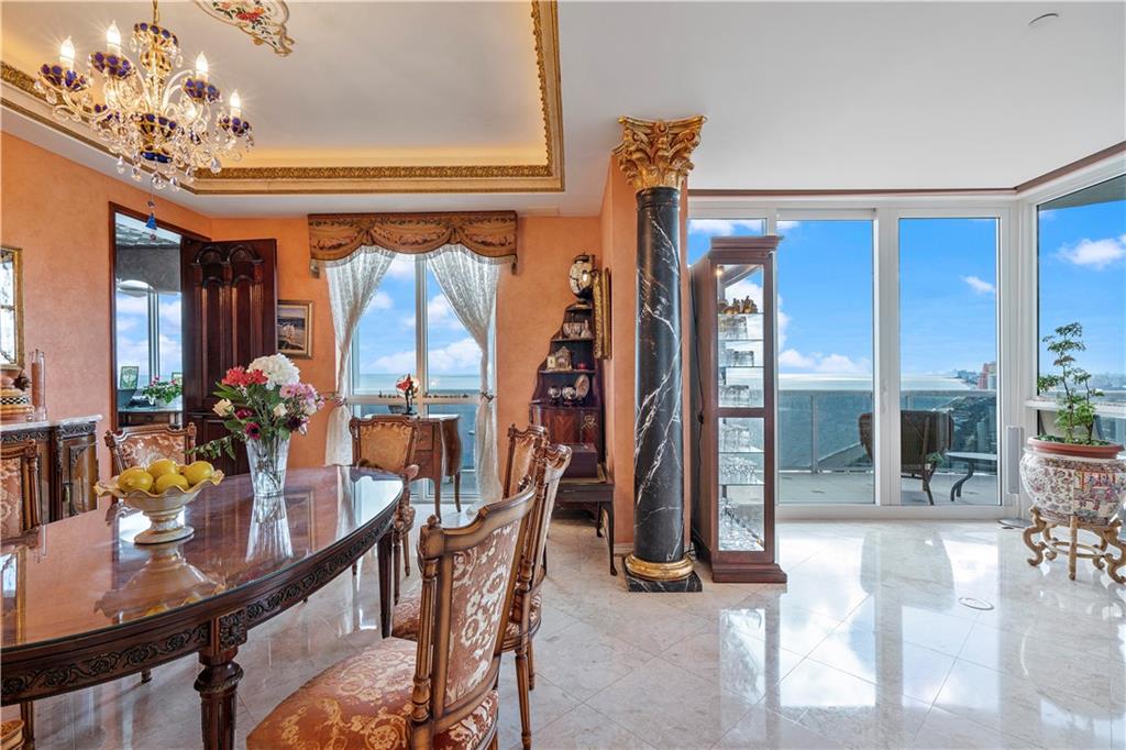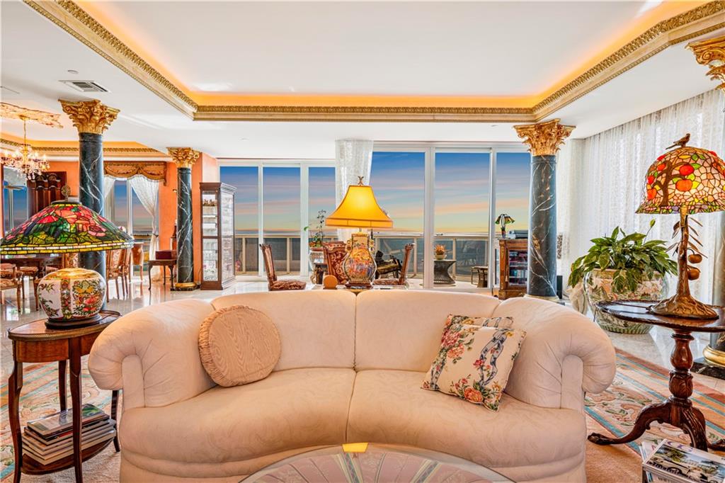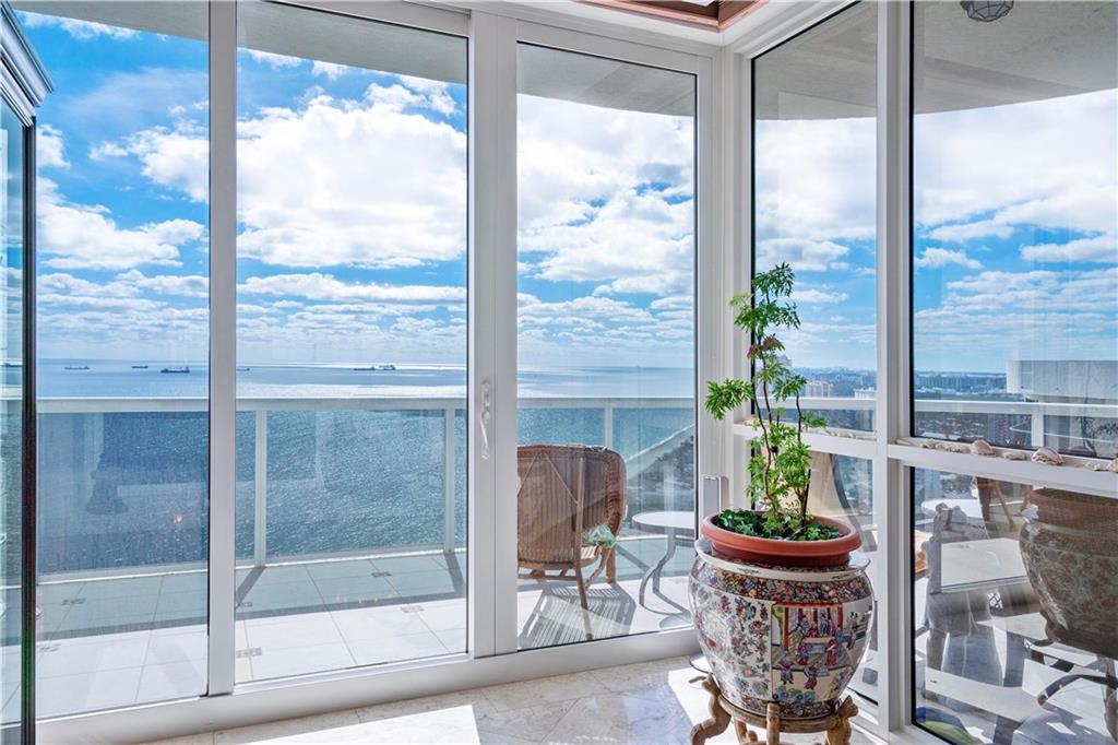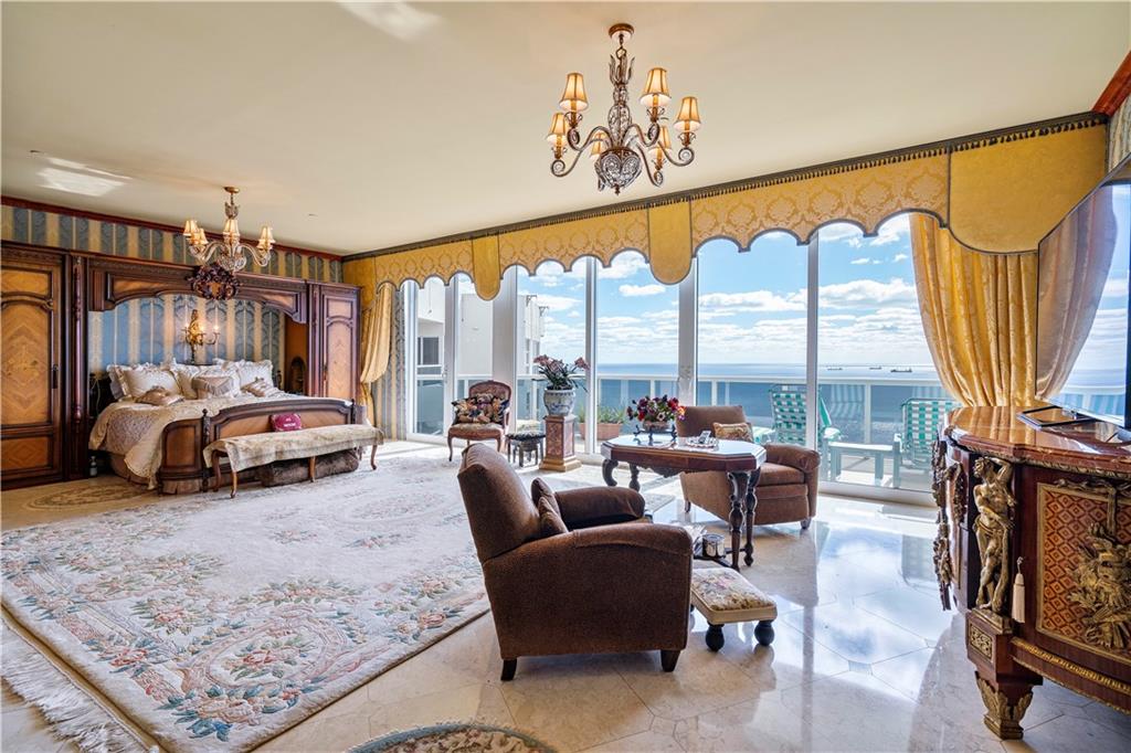 Southeast Ocean Grand Penthouse at L'Hermitage. A Regal Palace in the Sky! Largest available on highest floor of complex. Over 7,000 square feet of living space w/ 6 separate balconies. All encompassing 270 degrees of breathtaking views for sunrises, sunsets, city views, coastline views, intercoastal views. 11' ceilings, private elevators, recently upgraded HIGH IMPACT windows and doors throughout. 6 bedrooms, 6.5 baths, 2 kitchens, formal office, extra storage, separate entrances for large families that want their own living areas. 3 Prime parking spaces included! This one of kind magnificent unit is a must see. L'Hermitage is over 10+acres resort style living with a 2.5 acre pool deck, café, pools, spas, saunas, steam, attended beach, pets ok
