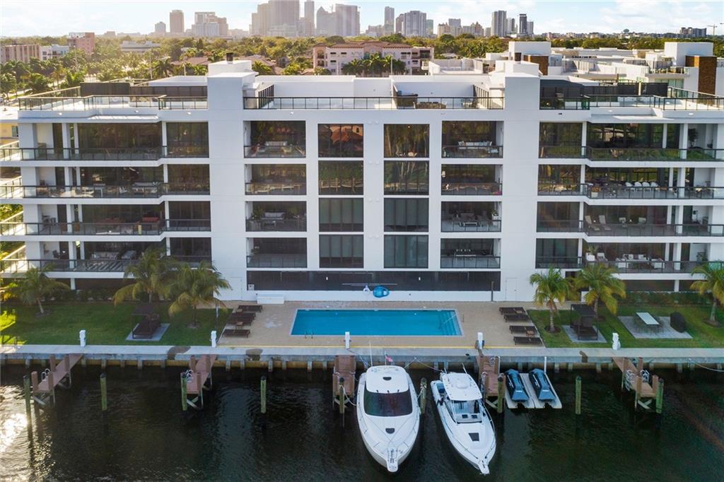 WATERFRONT PENTHOUSE W/DOCKAGE & PRIVATE ROOF TOP TERRACE. Fort Lauderdale waterfront living at its finest walking distance to world famous Las Olas Blvd. Contemporary flow thru unit, 2 large balconies, 10' ceilings, floor to ceiling impact windows & doors. Step from the elevator into your private foyer. Outstanding views of the waterway, multi-million-dollar homes, resort style pool, & private docks. Open kitchen with 6 burner gas range, wine refrigeration & large center island. Bright open floor plan conducive to today's lifestyle. Spacious master suite. 3br, 2fba, 2 garage spaces (electric car ready) & dockage for a 35' boat. Walk to shops, restaurants & the beach.