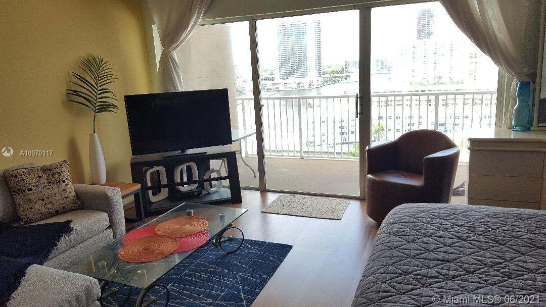 Studio spacious size unit, sf 555 sunny, bright, separate full bath, separate equipped kitchen. Great Ocean and Intracoastal views from large functional balcony. The Hemispheres - resort style, full service, 4 buildings Complex, offering tons of amenities, 2 private pools, beach services, 24/7 security, parking garage, 2 restaurants, beachside lunch / breakfast bar, gym, sauna, tennis courts..., too many to list. Included in HOA - Central system cold + heat air, CABLE TV + WIFI, water. Security Card excess to all amenities on both ocean + bay sides! Very well maintained grounds, safe community, lots of activities, local bus transportation. Great investment, owner will cooperate with buyer for potential tenant.