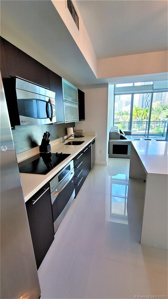 Step into this palatial townhouse and be welcomed by the towering floor to ceiling windows that create an airy, spacious ambiance. Renovations on the floor and bathrooms have just been completed including massive 48 X 48 porcelain tile on the first floor and elegant, tastefully patterned tile in the bathrooms. This townhouse has a gorgeous view of the beautiful Miami Tower which is even more spectacular at night. Located in the very secure, very desirable Riverfront neighborhood directly across the Miami River from Brickell City Centre, this townhouse is extremely central and within walking distance to some of Miami's most attractive features! The Ivy building has phenomenal amenities! Parking space is located on same floor, very close in parking deck.