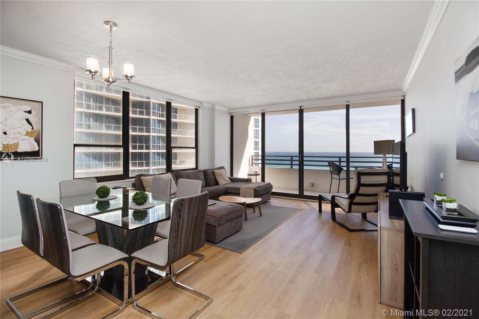 Amazing apartment with direct ocean view on the beach! Is located on the heart of Hollywood, near to mall, restaurants, public transportation, parks and schools. Unit full furnished, Oceanfront with 2 bedrooms and 2 Bath, open kitchen, large balcony on the heart of Hollywood. Great opportunity with amazing amenities, gym, heated pool, BBQ and tables. Great investment whit flexible rental policy every 30 days ! MUST SEE!!! Contact listing agent!
