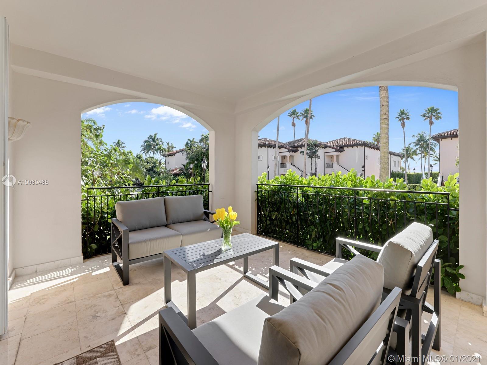 Modern renovation offered fully furnished w/ brand new contemporary décor. White, bright open floor plan w/ chic Italian kitchen and master bath. Desirable ground floor location next to the Beach Club, Spa, tennis courts and members’ beach. The ideal floor plan in this pied-a-mer for personal occupancy and short or long term rental. Boasts 1 garage parking space, storage room & golf cart. Perfect move-in condition - start enjoying the lifestyle of Fisher Island immediately.