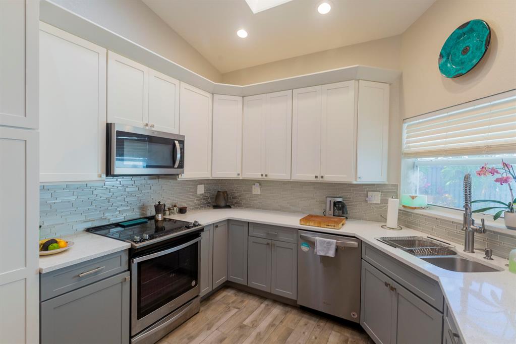OWN IN PARKLAND - IMMACULATELY REMODELED 2/2 VILLA in PARKLAND'S MOST CHARMING NEIGHBORHOOD, THE MEWS. LOW HOA. Come home everyday to the serenity of the mature trees and air plants in this little known gem of a community in east Parkland. This open floor plan home has it all: New roof in 2019, new AC in 2020, impact windows throughout and a landscaped backyard. Remodeling started in 2018 and the seller has made several meticulous renovations including: Opening up the kitchen to the dining and living areas w/deep quartz counters & breakfast bar overhang for a wide open floor plan & 14 foot vaulted ceilings. Glass tile backsplash, dual mount stainless sink and new cabinets. Bedrooms each feature large walk-in closets and on-suite bathrooms. Parkland's A+ schools (walk to Riverglades)