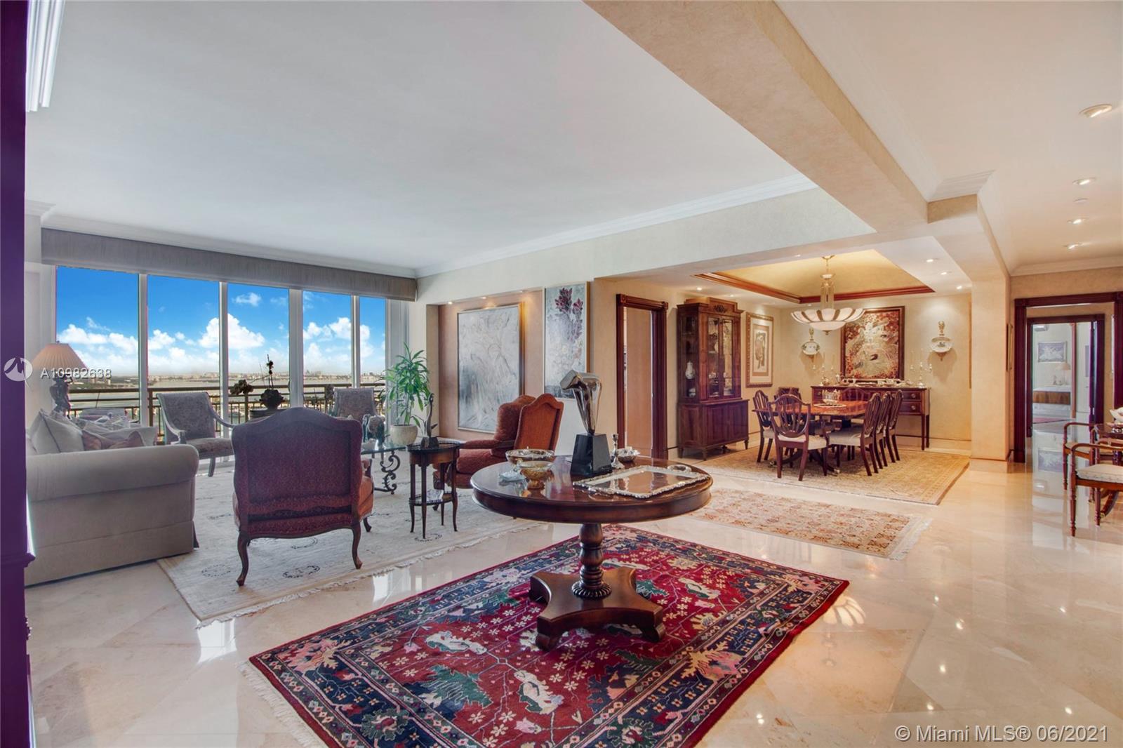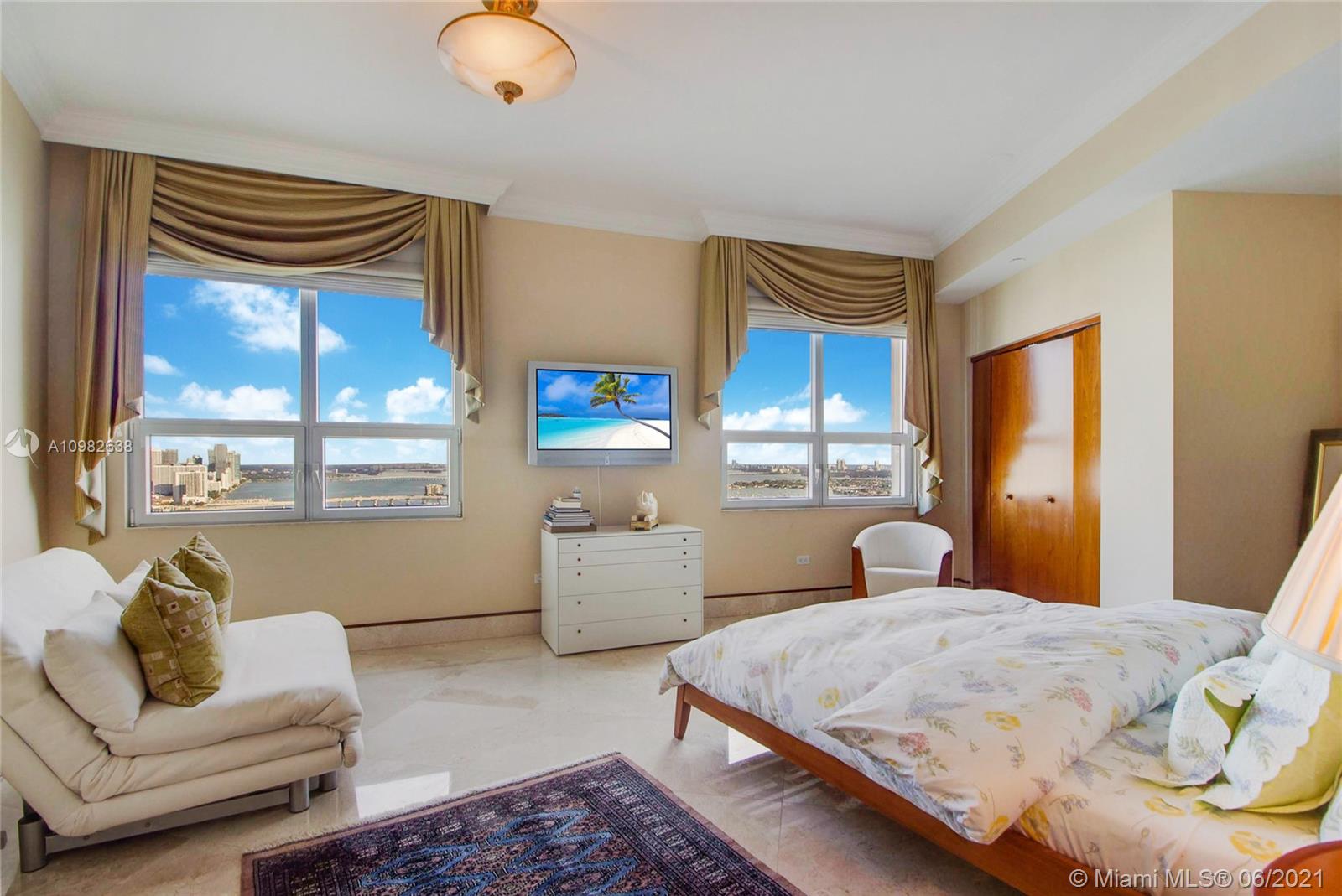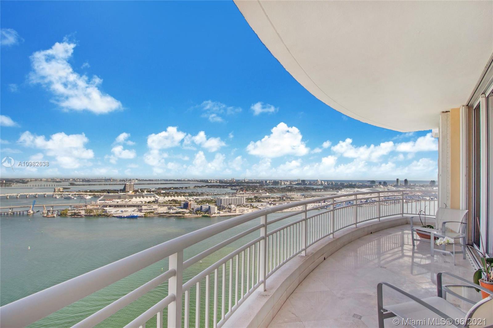 From the moment you walk through your foyer & into your expansive living room, you see panoramic ocean/bay/port views in this oversized Brickell Key condo. Feels more like a house than apartment! Enjoy Brickell’s 98% walkability in Miami’s most exciting neighborhood. Live, work, play...enjoy best shopping, restaurants, office towers, hotels in town. Split floorplan, 2 Master Bedrooms, largest 04 floorplan, 3,257 SF, 4BR/4.5B. Bright kitchen w/views, Butler’s pantry, marble floors, custom woodwork. 2 reg. assigned parking spaces plus highly desired private double garage #9 with its own remote-control garage door + lots of add'l storage. Luxury amenities: 24/7 security/valet/concierge, waterfront pool, BBQ/party area, 2-level spa/fitness, tennis, basketball, racquetball. Live your best life!