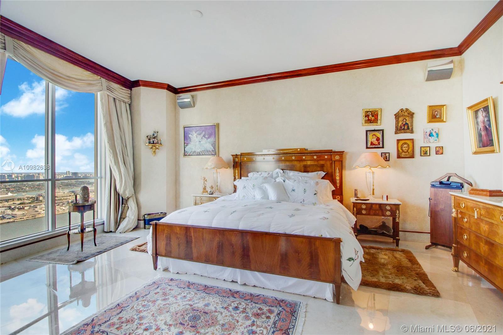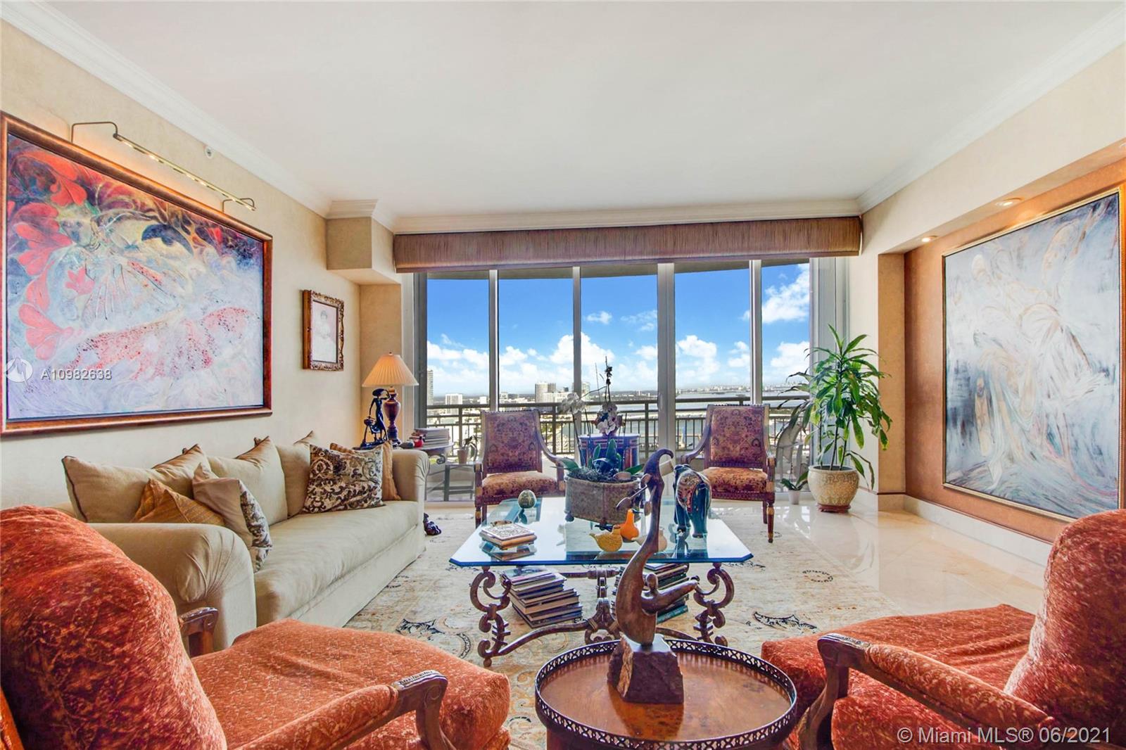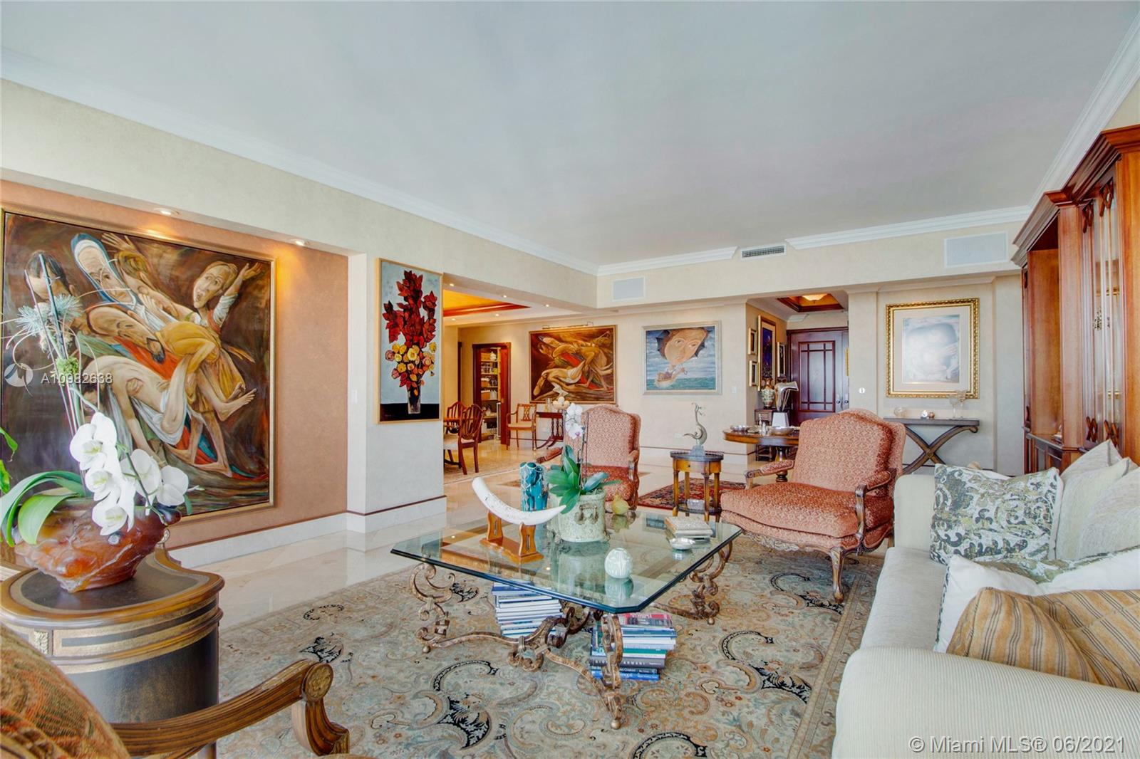 From the moment you walk through your foyer & into your expansive living room, you see panoramic ocean/bay/port views in this oversized Brickell Key condo. Feels more like a house than apartment! Enjoy Brickell’s 98% walkability in Miami’s most exciting neighborhood. Live, work, play...enjoy best shopping, restaurants, office towers, hotels in town. Split floorplan, 2 Master Bedrooms, largest 04 floorplan, 3,257 SF, 4BR/4.5B. Bright kitchen w/views, Butler’s pantry, marble floors, custom woodwork. 2 reg. assigned parking spaces plus highly desired private double garage #9 with its own remote-control garage door + lots of add'l storage. Luxury amenities: 24/7 security/valet/concierge, waterfront pool, BBQ/party area, 2-level spa/fitness, tennis, basketball, racquetball. Live your best life!