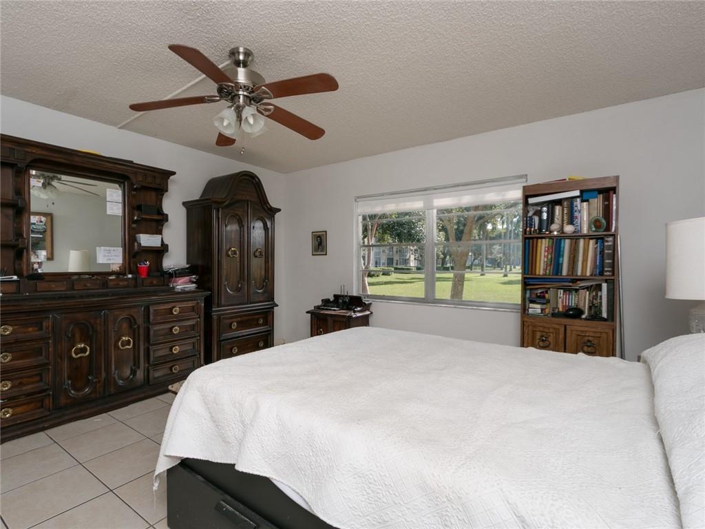 Wow-Huge 2/2 "L" corner that is rarely available for sale. Largest unit in the complex with gorgeous golf course views. Corner unit has extra windows. Huge eat-in kitchen with white cabinets. Tile throughout the condo. Stackable washer-dryer. Split bedroom floorplan. Updated clubhouse with indoor and outdoor pools-restaurant-recreational activities-gyms-tennis-ball courts-shuffleboard-theatre with top name entertainment-movies. Walk to pool. Courtesy bus to shops-restaurants-malls. 24 hour manned guard gate with roving security. Water-basic cable-insurance-internet and roof included in maintenance. One adult must be over 55. No renting for 2 years. Easy to show. Motivated seller. Needs updating. Exclude kitchen free-standing freezer. Fabulous community with convenient location.