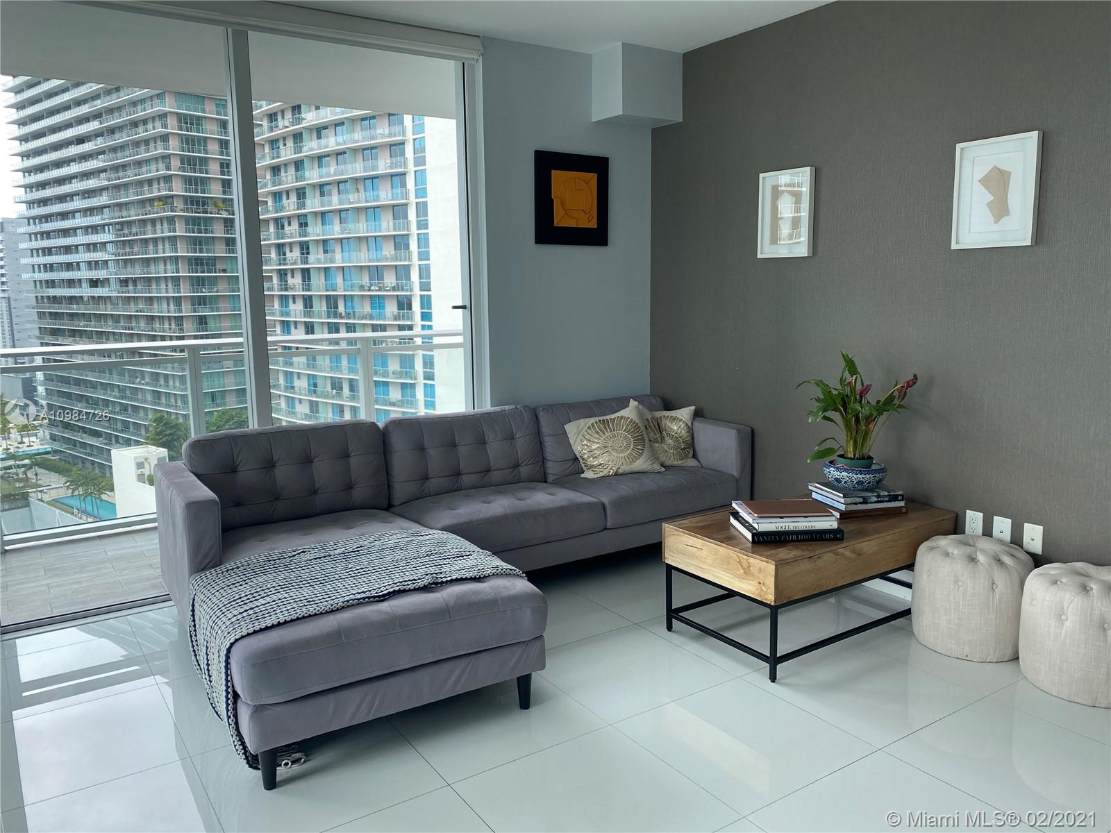 Beautiful corner unit with natural light, located in the heart of Miami's financial district, Brickell. Walking distance to restaurants, mall, grocery. Great location to invest. Ideal place to live. Beautiful amenities in the building (kids room, pool, gym, jacuzzi, sauna, library, community room) inspired by British elegance. Common building areas are decorated with pictures by famous photographer Terry O'Neil. 24/7 Concierge, 24/7 Valet, EMV charging stations, bike room.