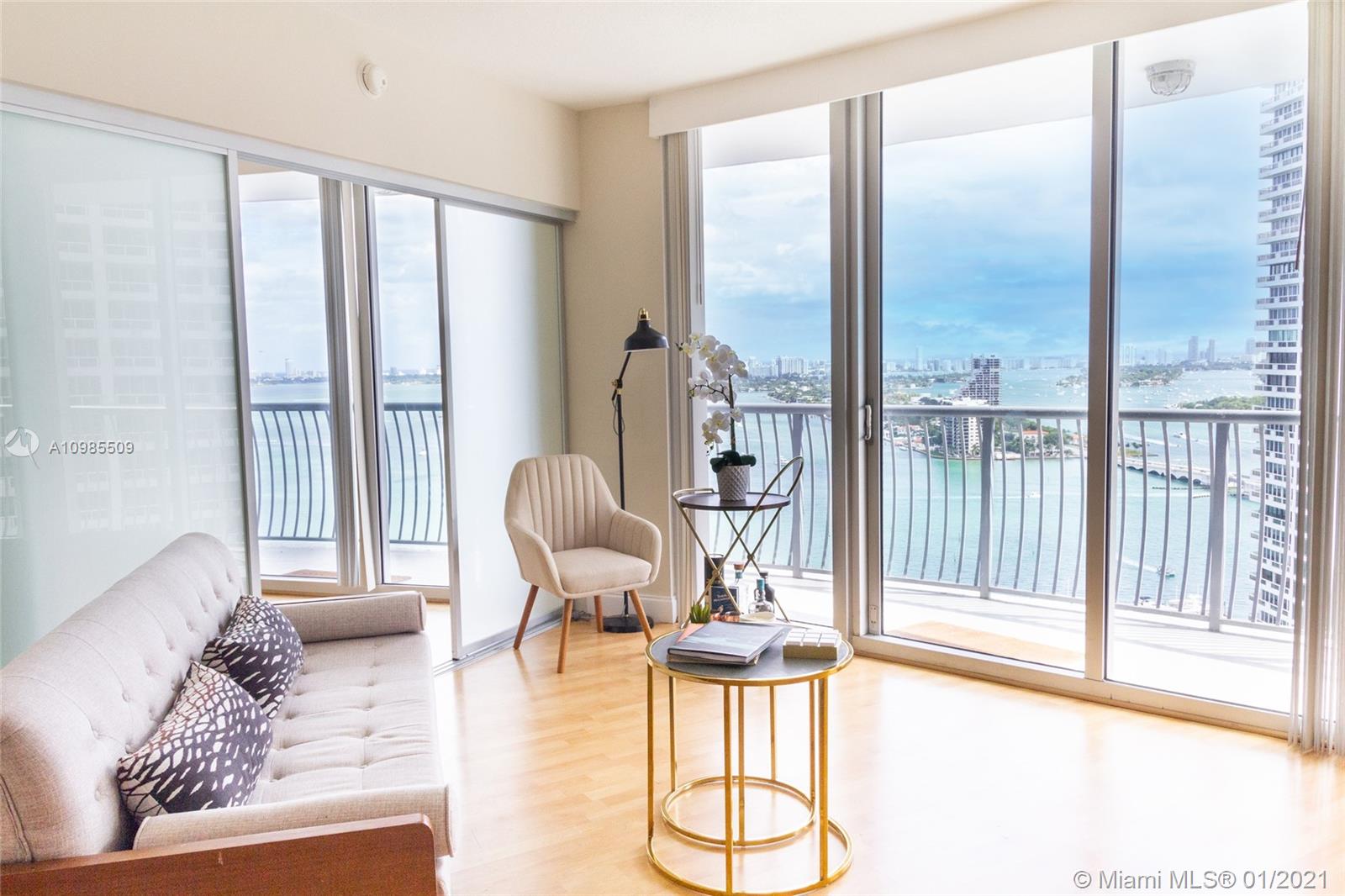 Stunning 2 bed/2 bath condo at The Opera Tower with direct bay & city views. Split floor plan unit located on the 28th floor. Enjoy water views from every room with floor to ceiling impact windows, and a huge wrap-around balcony. Ample kitchen with granite countertops, and stainless steel appliances. Washer & dryer included. One assigned parking & valet parking available. Resort-style amenities include a gym, pool deck, clubroom, and a business center. Convenience store, cleaners, & hair salon downstairs. 24/7 security & concierge on site. Short-term rentals allowed. Centrally located in the vibrant neighborhood of Edgewater across from Margaret Pace Park. Nearby Wynwood, Design District, & Midtown. Minutes away from Miami Beach. EASY TO SHOW & VIDEO TOUR AVAILABLE SEE BROKER REMARKS