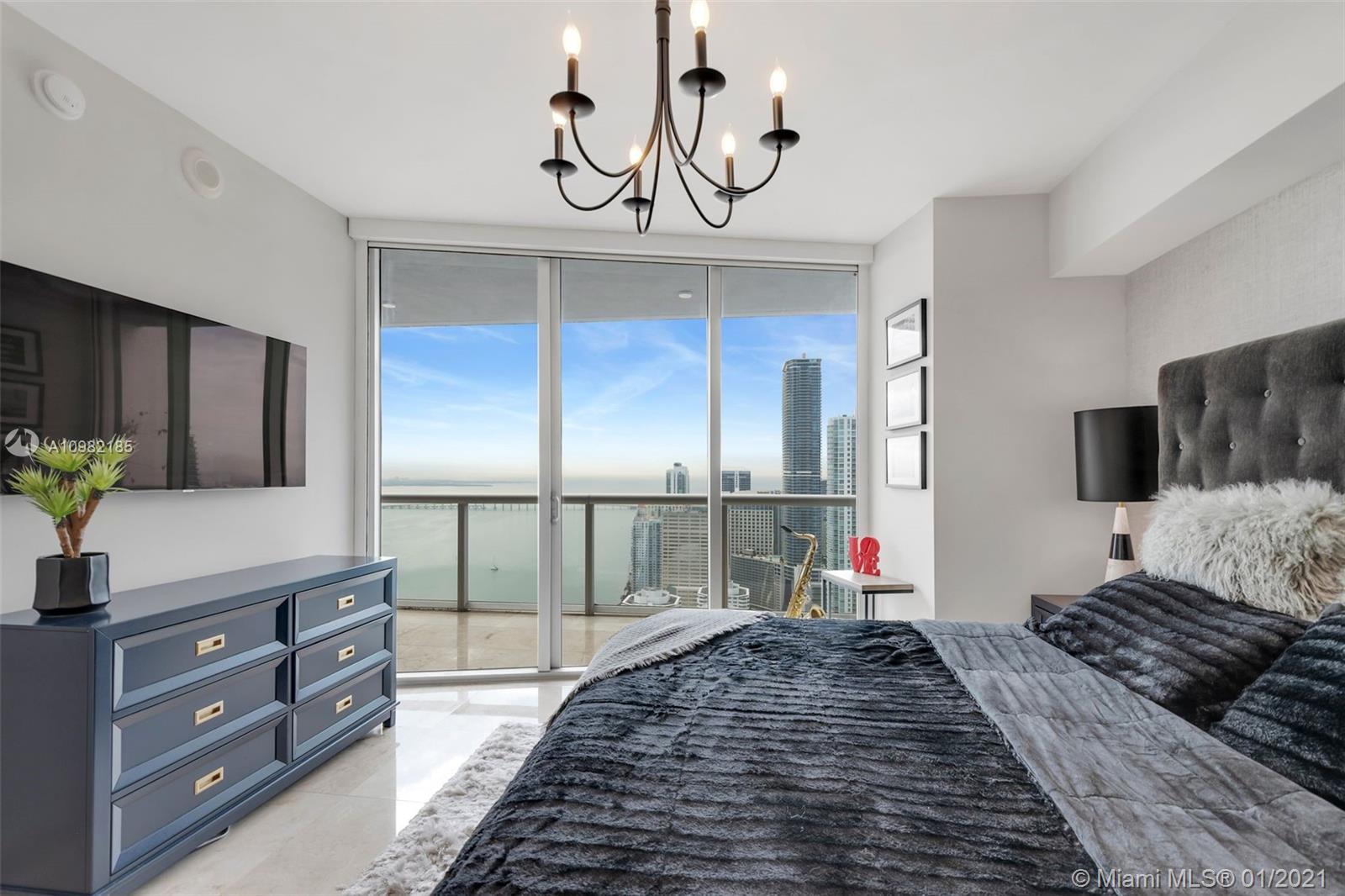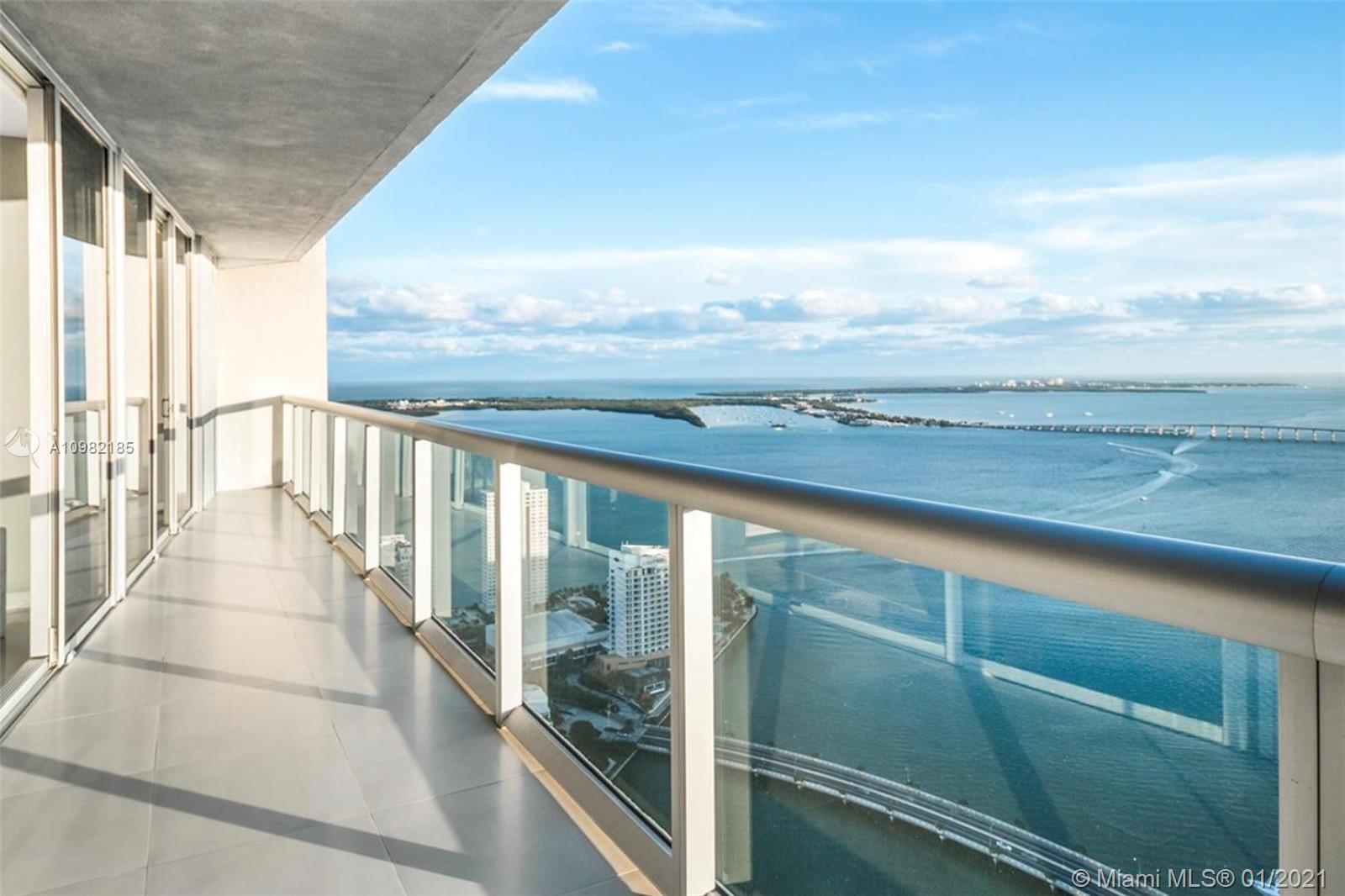 Miami living at its finest in the most sought-after 03 line at Icon Brickell Tower II. Enjoy unobstructed ocean views from all rooms as southeastern light fills this high-floor 2 bed 2 bath + den 1518 SqFt home in the sky. Split floor plan with spacious main suite with spa-like bathroom & custom closets, second bed w/ en-suite & open additional den. Enjoy sunrises & sunsets through floor-to-ceiling windows & an expansive glass-enclosed balcony. Offered fully furnished with tasteful upscale transitional design décor & neutral marble tile throughout. Updates include full-size w/d, remote bedroom shades & chic fixtures throughout. Building offers hotel-like amenities such as Olympic-size pool, theater, valet, concierge, spa & fitness center w/ world-renewed dining just downstairs.