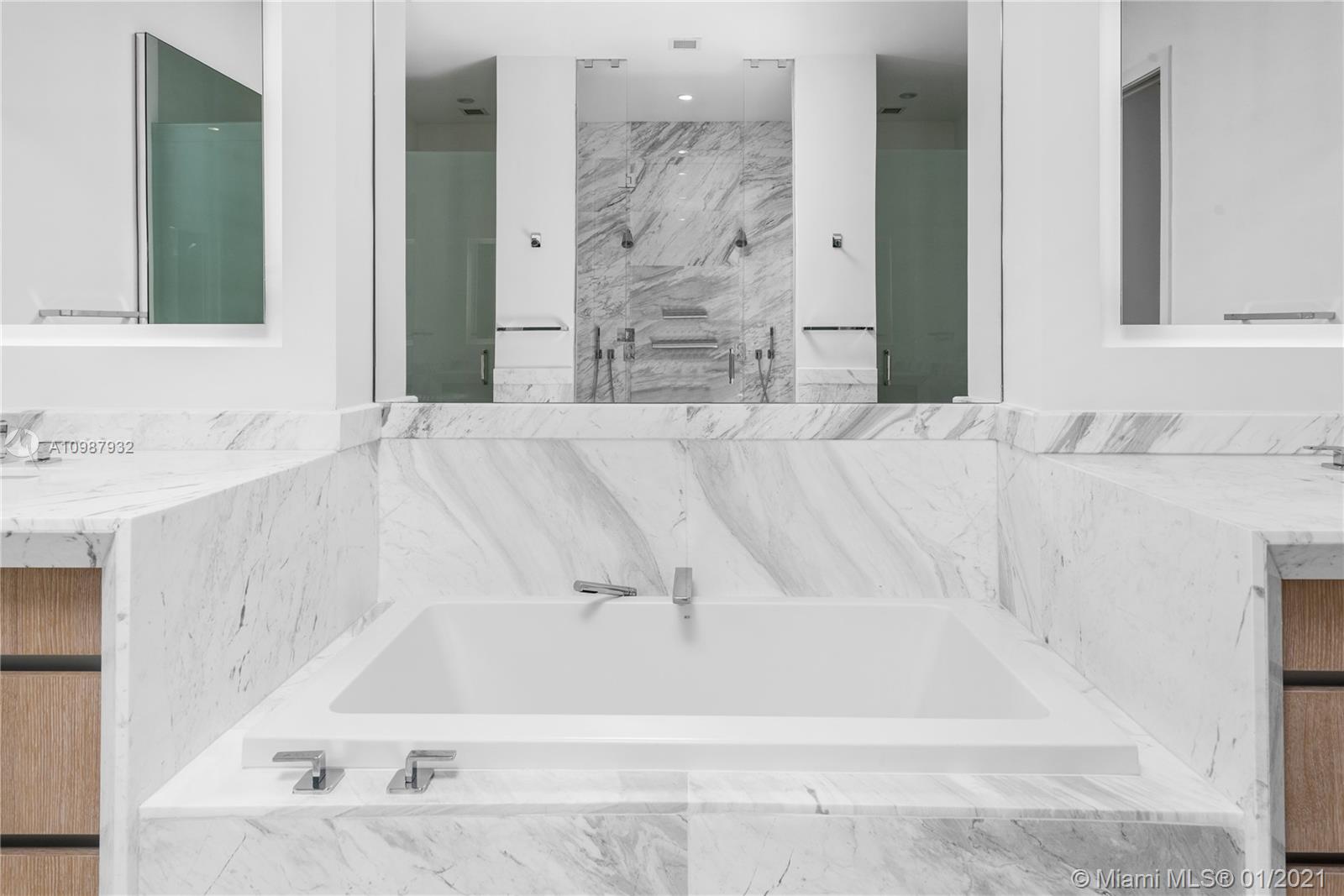 Overlooking the prized Biscayne Bay, this 3 bed condo welcomes you to the newly delivered One Park Grove. Great opportunity to purchase with tenant in place paying $14,000/month. Contact us for lease details and kick out clause. A private elevator foyer opens to 2,884 sqft with 12ft glass walls and a 393 sqft bayfront terrace highlighting the sensational views. 9B is finished with closets, drapes and light fixtures. It also boasts an open kitchen with upright wine fridge, marble countertops and high end appliances like Subzero and Wolf gas ranges, plus 2 water closets with Toto bidets in the main bath. Home to only 66 residences, One Park Grove features dedicated spa, sauna, fitness center, board room along with the 50,000 sqft of amenities of beautifully landscaped grounds.