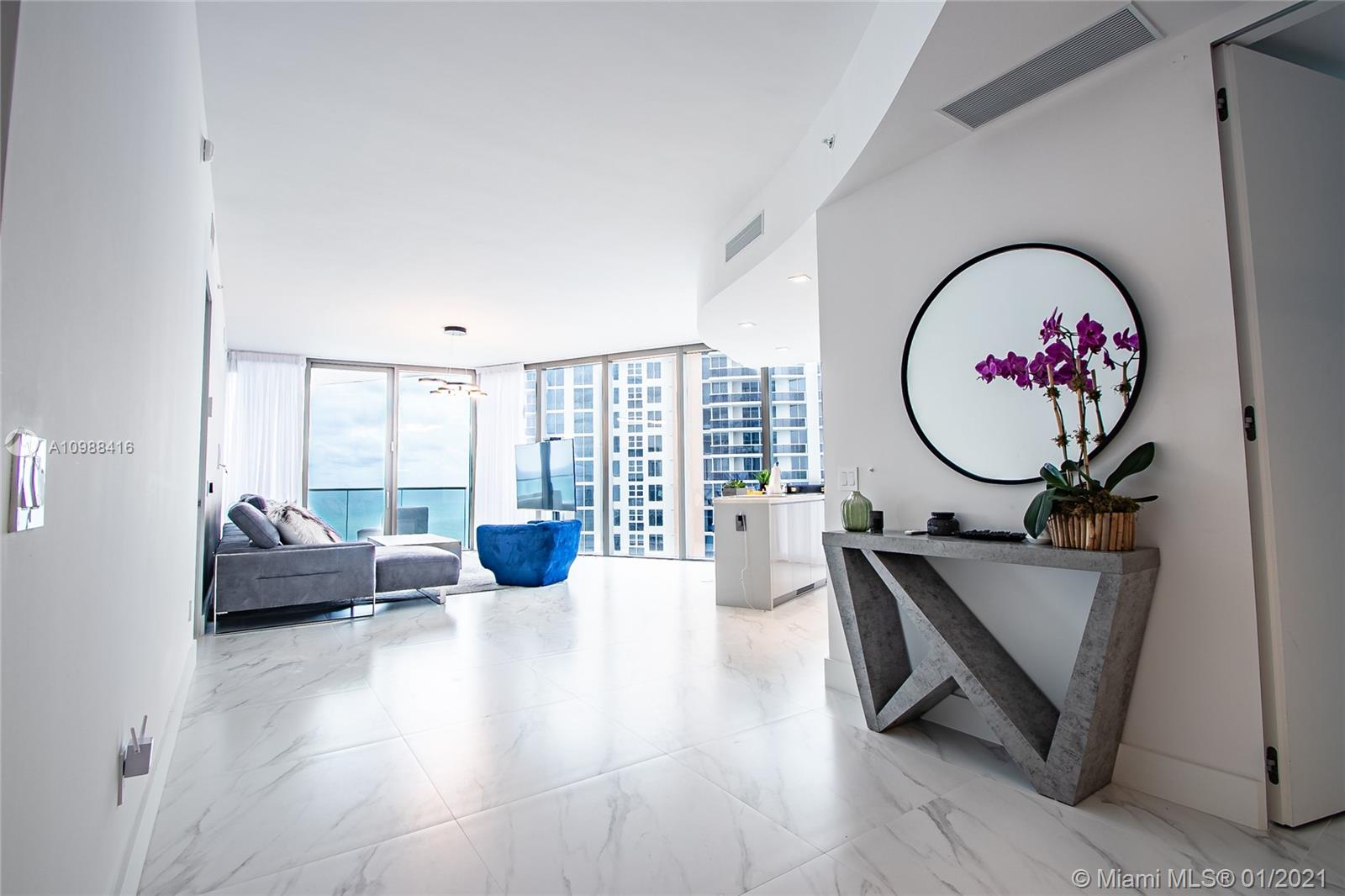 Residences by Armani 2 Bedrooms/2.5 Bathrooms. Modified floor plan with master bedroom entrance in the center of the unit!! Must see. Tastefully finished , ready to move in, custom built closets , 10'' floor-to-ceiling windows offering incomparable views over countless miles of soft white sand, turquoise water of Atlantic Ocean and the city. Spacious 10 foot-deep private terraces create a seamless expansion of living space into the fresh air. Sleek Armani custom kitchens with state-of-the-art appliances. Impeccable .Custom-made Armani bathrooms with marble floors. Residences by Armani Casa offers over 35,000 SqFt of 5 star amenities including Spa & treatment rooms, private owners restaurant and pool lounge, children's play area, cigar & wine room and 24/7 concierge services.