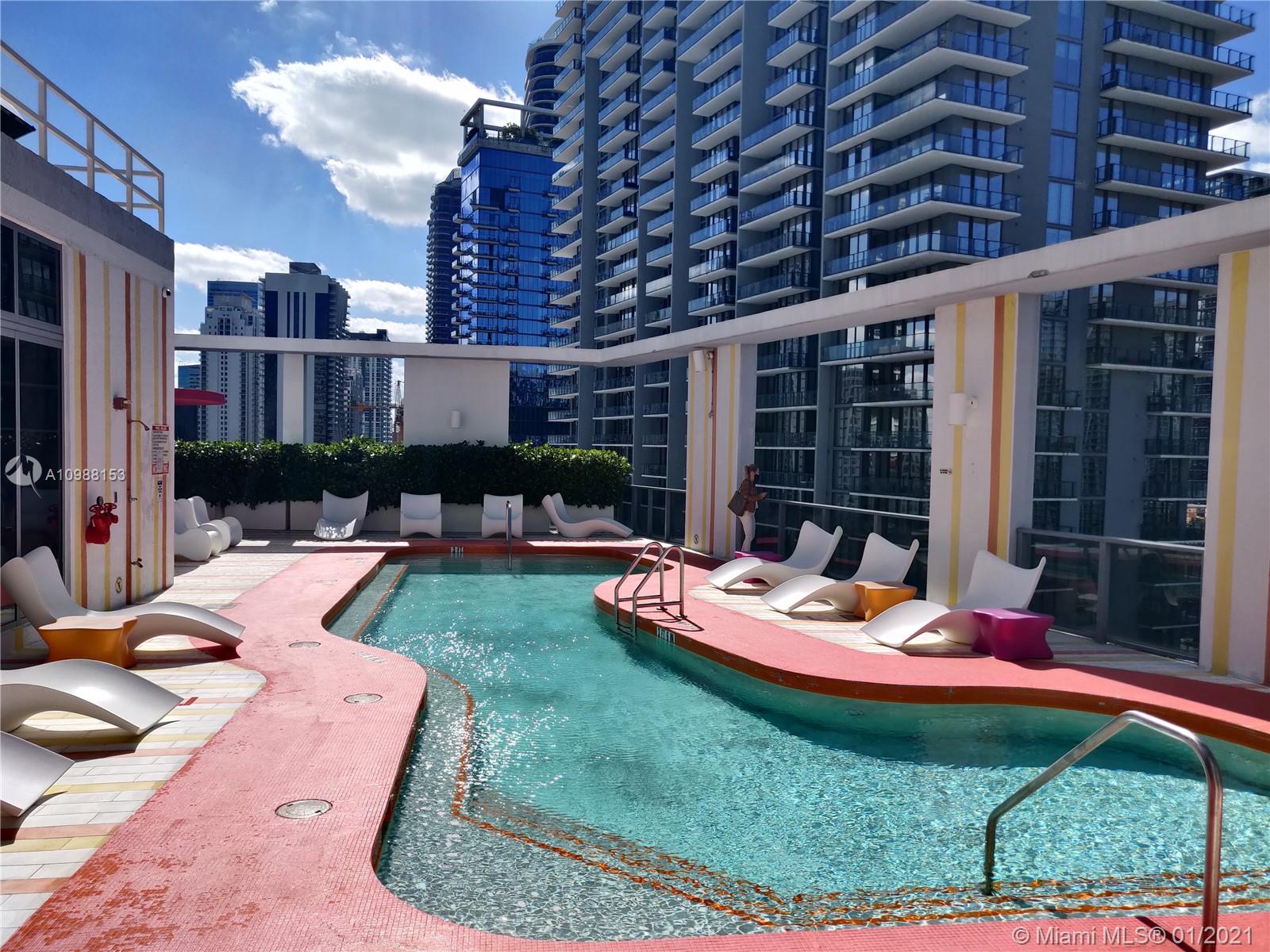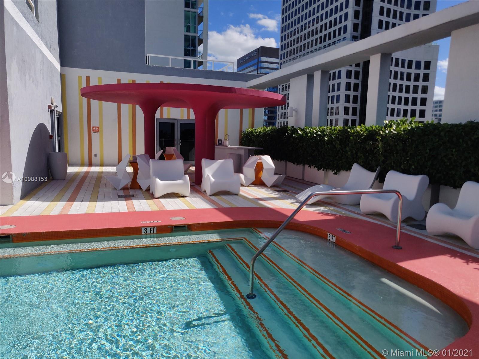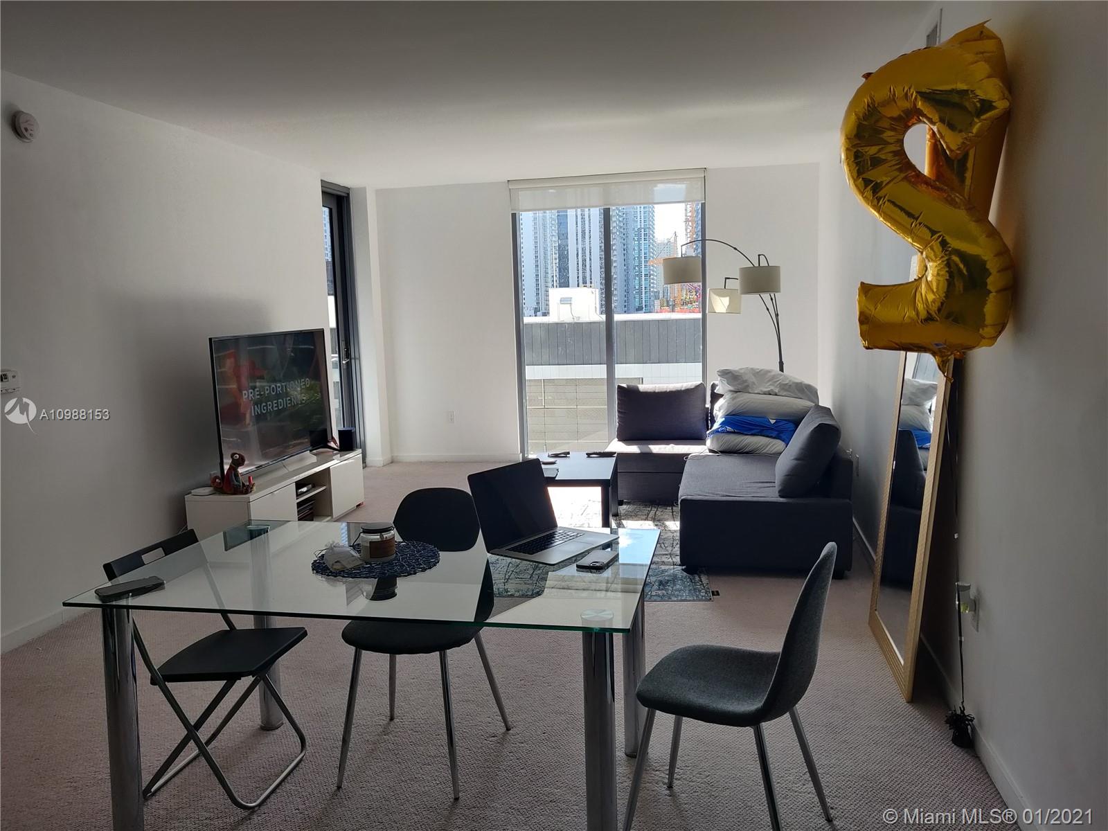 Beutiful SPLIT unit. 2 bed, 2 bath (one bathroom with tub - the other with shower)+ DEN. 1086 sq ft living area + 70 sq ft balcony. TOTAL 1156 sq ft. Nice size living room with exit to good size balcony, open kitchen. Carpet floors in living room and in the bedrooms. Very bright unit. Skydeck swiming pool, party room and gym. Valet parking only. TENANT OCCUPIED until JUNE 2021