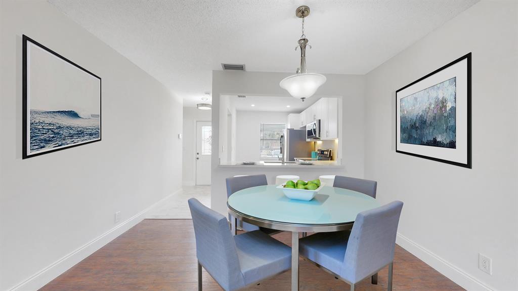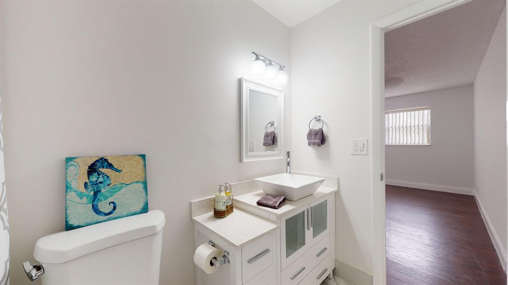 This Beautiful updated 1 bedroom 1 1/2 bath waterfront villa is located in a gated 55+ community at Golden Lakes Village in West Palm Beach. The kitchen features included are white shaker cabinets, pantry, quartz counter tops, stainless steel appliances, white herringbone tiled back splash. White Carrera marble looking porcelain tile in the kitchen foyer, bathrooms and storage closet, wood laminate flooring in the Living, Dining & Master suite. The Master suite has a shower w/glass door, Vanity with quartz tops & a good sized closet. Other features included are a lovely 1/2 bath, new A/C, Large Storage room, Florida room and the Master overlook the pretty water views, 5 inch baseboards throughout & more. This villa is located just next door to the community pool and laundry room.