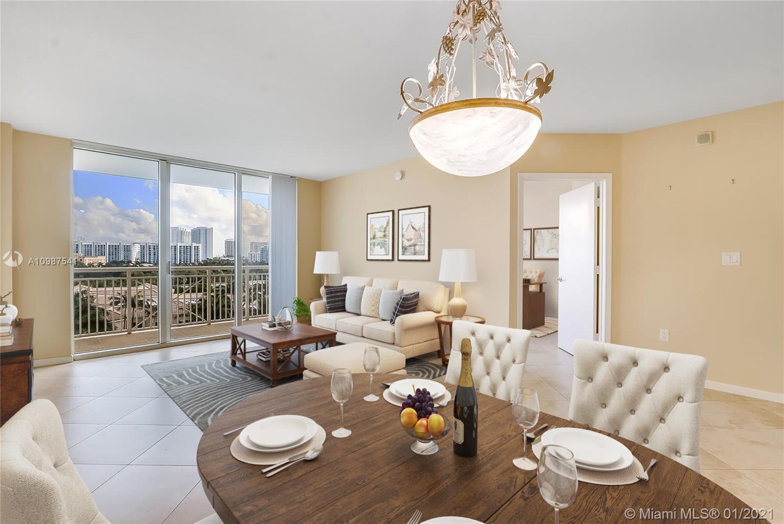 This 2 bedroom, 2 bathroom condominium unit is located on the 7th floor in Turnberry on the Green. Meticulously maintained by it's original owner. Located in Aventura near the world-famous Turnberry Isle Resort, across the street from Aventura Mall, steps from Aventura's scenic "Circle" (3.2 mile jogging path)and across the bridge from some of the greatest beaches in the world! Beautiful city skyline can be seen from this unit's balcony, tile flooring throughout, brand new stainless steel appliances, & most importantly it is move-in ready! Building features 24 hour valet & security. Resort style lagoon pool & hot tub, clubhouse, fitness center, sauna, yoga studio, party room, billiard parlor, playground, bbq area, business center & library. Some photos have been digitally staged.