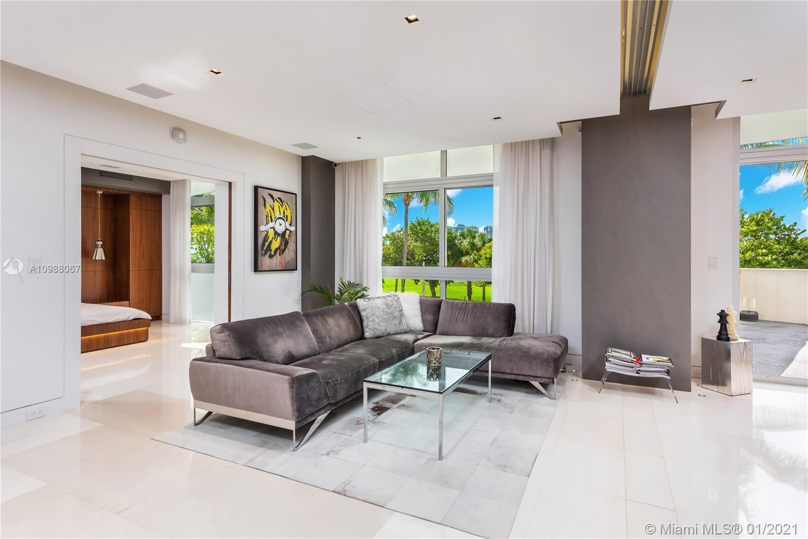 NEW YEAR, NEW PRICE. This 2/2 home in the Meridian Lofts is the epitome of stunning design! It flaunts custom walnut millwork, motorized blackout shades, high ceilings w/custom lighting, & sound insulated walls throughout. Enjoy fine cuisine & home cooked meals in a Miele kitchen & indoor BBQ grill, Dornbracht fixtures, limestone flooring, imported quartz countertop, & a custom wine cooler/rack. With Control4 integrated A/C, A/V & LED lighting system, Samsung 4K TVs, and motorized Epson projection w/ a 135 living room screen, the home connects modern elegance w/ technology.It comes fully furnished & equipped to include Philippe Starck for Flos, Walli-Walli, Roche Bobois, Kryon, & a Duravit moon jacuzzi.Welcome each day w/ golf course views from the oversized terrace, & enjoy a 24/7doorman.
