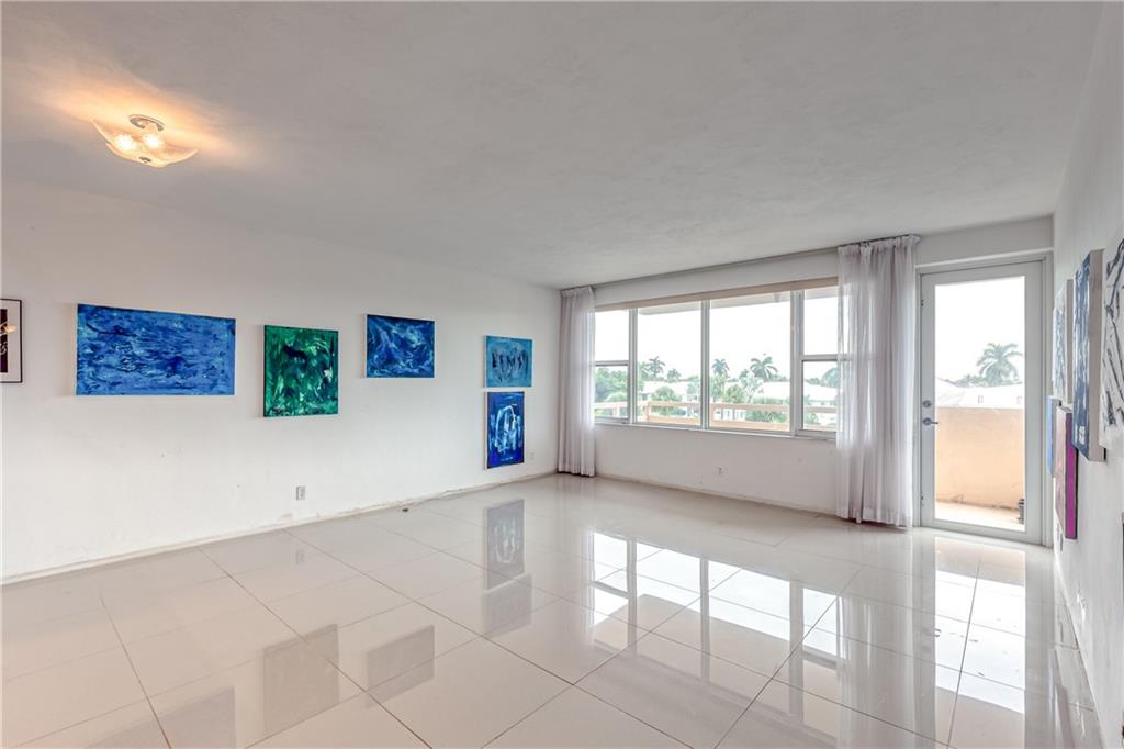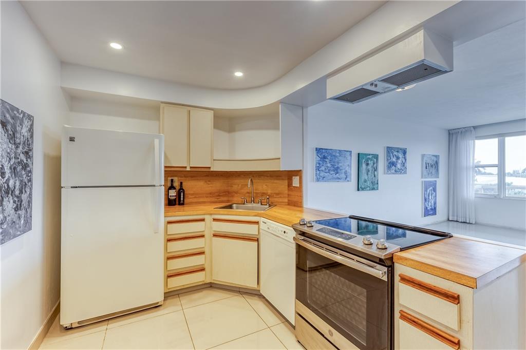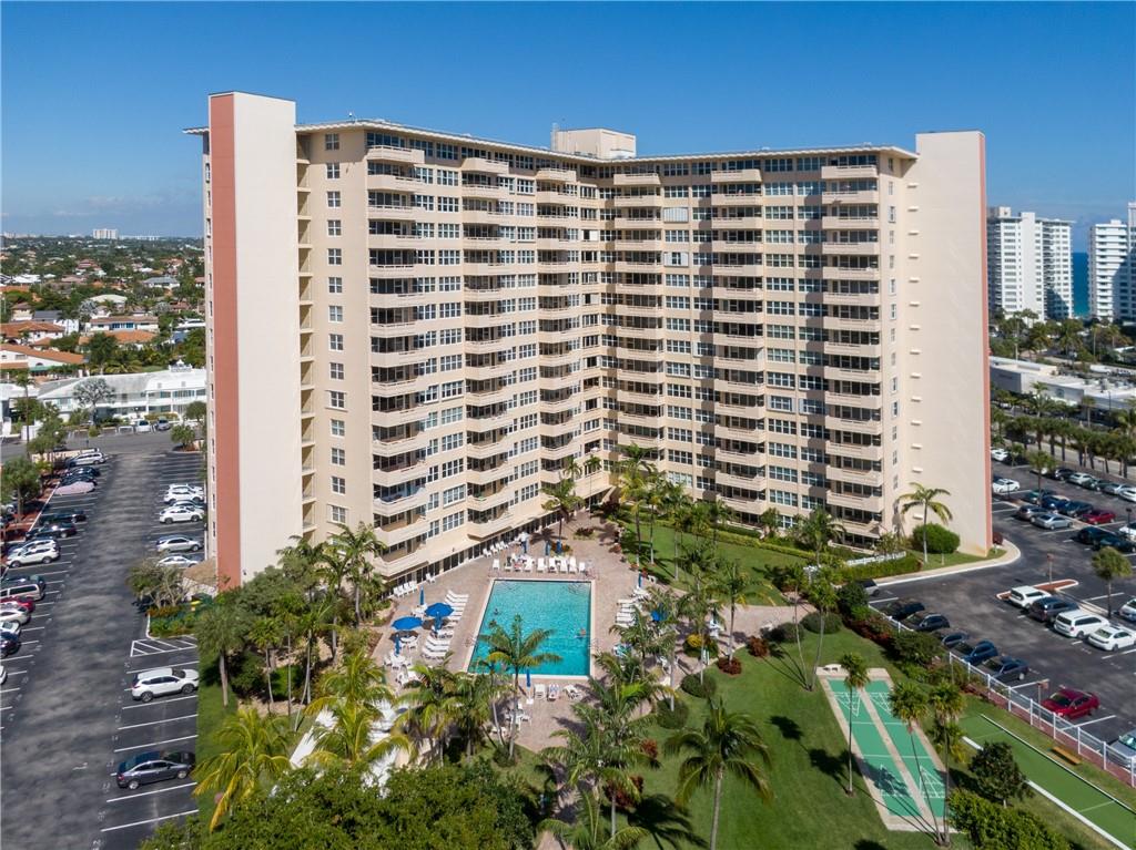 Spacious 2 bedroom 2 bath across from the beach at Coral Ridge Towers East! Current owner opened up the kitchen to the living area making it much nicer when you are cooking or entertaining guests! Flooring has been updated to 24 inch porcelain tiles throughout the entire condo, easy to maintain. Unit has high impact windows and doors with VERY large windows throughout. There is a bonus window in the master bedroom and extra space in master bedroom as well compared to similar 2 bedroom units in the building. You get extra living area and more natural light! Building has many updates, large special assessment for new balconies will be paid for by seller at closing. See brokers remarks for minimum income requirement to purchase. LOWEST priced 2/2 in the building! Across street from ocean!!