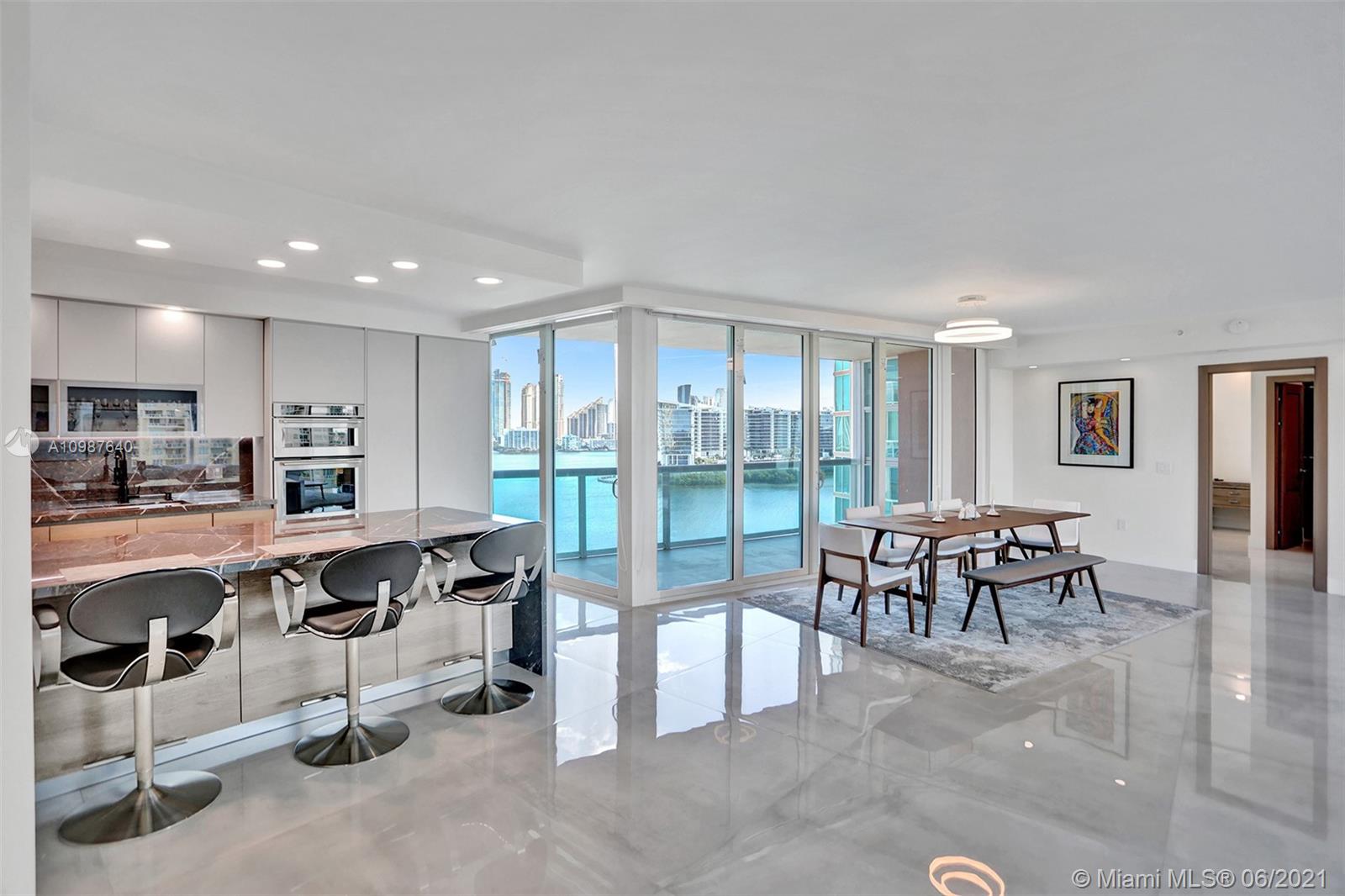 High-end spectacular renovated and upgraded 2 bedroom, 2.5 bathrooms luxury condo located in the heart of Aventura with bay and city views.Marble counter tops throughout kitchen and bathroom vanities, 48”X48” Porcelain Tiles from Spain by Navarti,Leibherr Built in Columm refrigerator and freezer, Sub- Zero wine fridge, Built -in Miele Coffee/Espresso Machine, Bosch built -in dishwasher,Samsung washer and dryer, Kitchen Aid induction stove top,ventilation hood and,built-in wall oven/microwave combo. Huge master bedroom with water view, custom build -in walking closets in both bedrooms, electric window shades in bedrooms and custom roller shades throughout the unit, Nest A/C System with brand new ductwork throughout the unit,brand new hurricane proof sliding doors out to balcony,