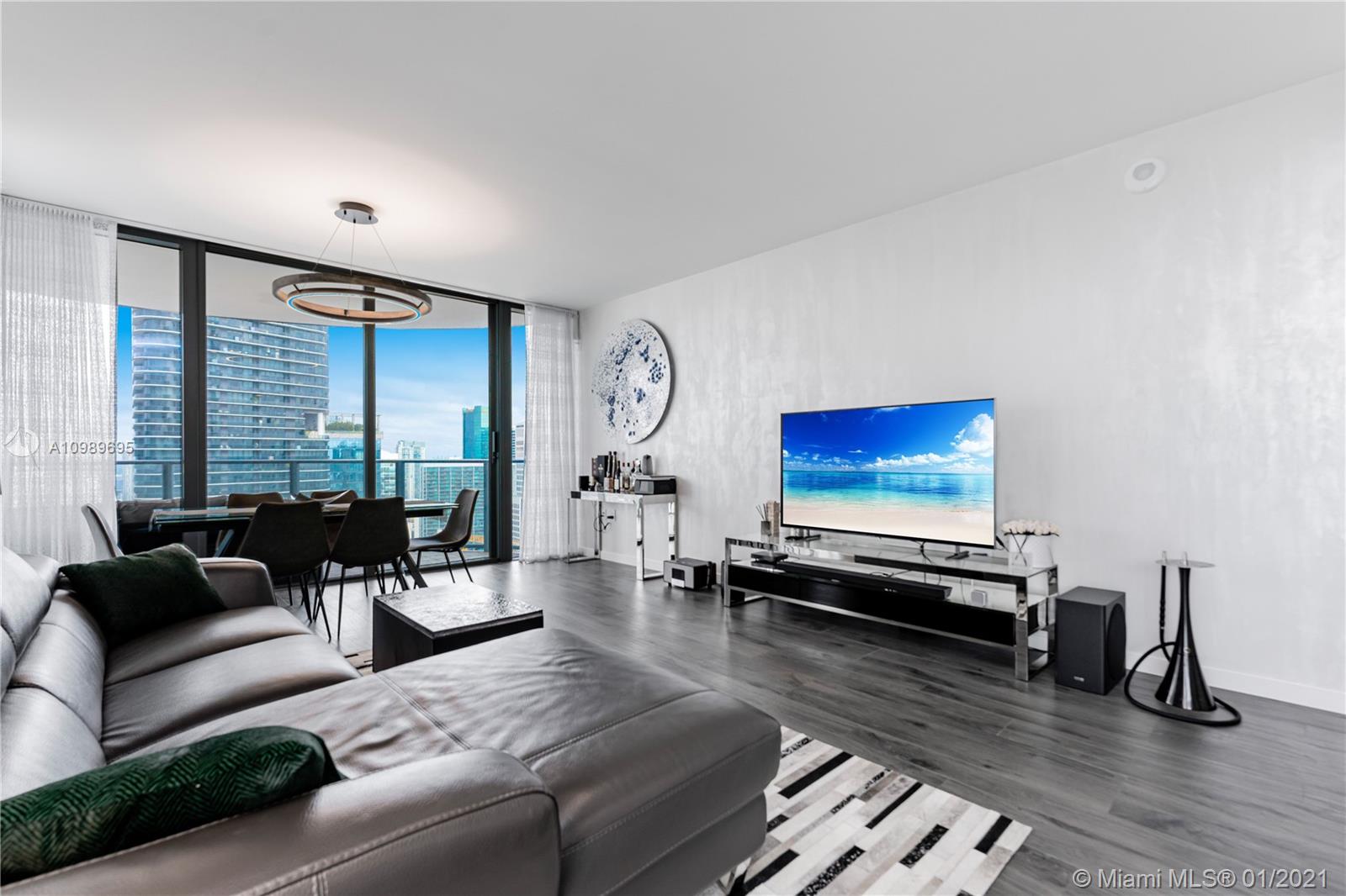 Awe-Inspiring Views w/Smooth, Smart & Sophisticated professional interior design. This CORNER unit offers the finest, unparalleled, unobstructed N & W vistas. See sunrise over Miami Beach thru Sunsets. It took 10 mths and $100K to complete this showcase Designer unit with venetian plaster accent walls, open kitchen w/ Miele high-end appliances, Italian finishes, masterpieces from Ugo Colombo, upgraded doors, smart LED lighting system, remote control blinds, add'l DEN/OFFICE, All done to be a Forever Home. BUT, a joyful new baby brings change. Let this Home be your Change. Flat Iron is your #1 Luxury destination; Concierge Services, Massage, Lap pool, Sky Club Pool & Sky Spa, fitness center, Business Lounge, Theater, Cafes, Kids Pool & Playroom, 2 parking spaces. Let's Live in Luxury.