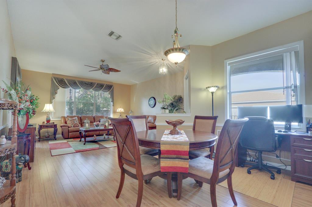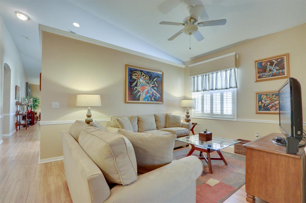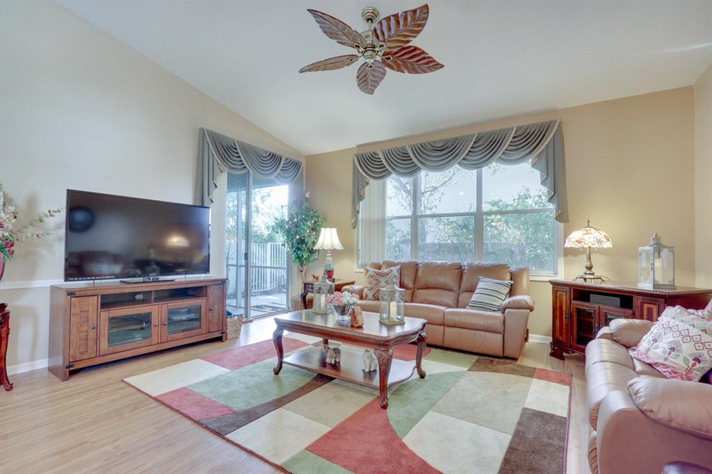 Immaculate and ready to move into. Spacious end unit located at the end of the street. Split floor plan has two bedrooms with a den that could easily be converted to a third bedroom. Large living and dining room. Kitchen has a pass through to the dining room, lots of cabinets, a pantry and room for a small table. The master has two large closets. Inside washer and dryer. Screened, covered patio. Andros Isle is a desirable community close to the turnpike, restaurants, and shopping. The community has lots of amenities including clubhouse, heated pool and much more. Square footage in tax records is incorrect. Correct square footage under air is 1517 SF. All measurements are approximate.