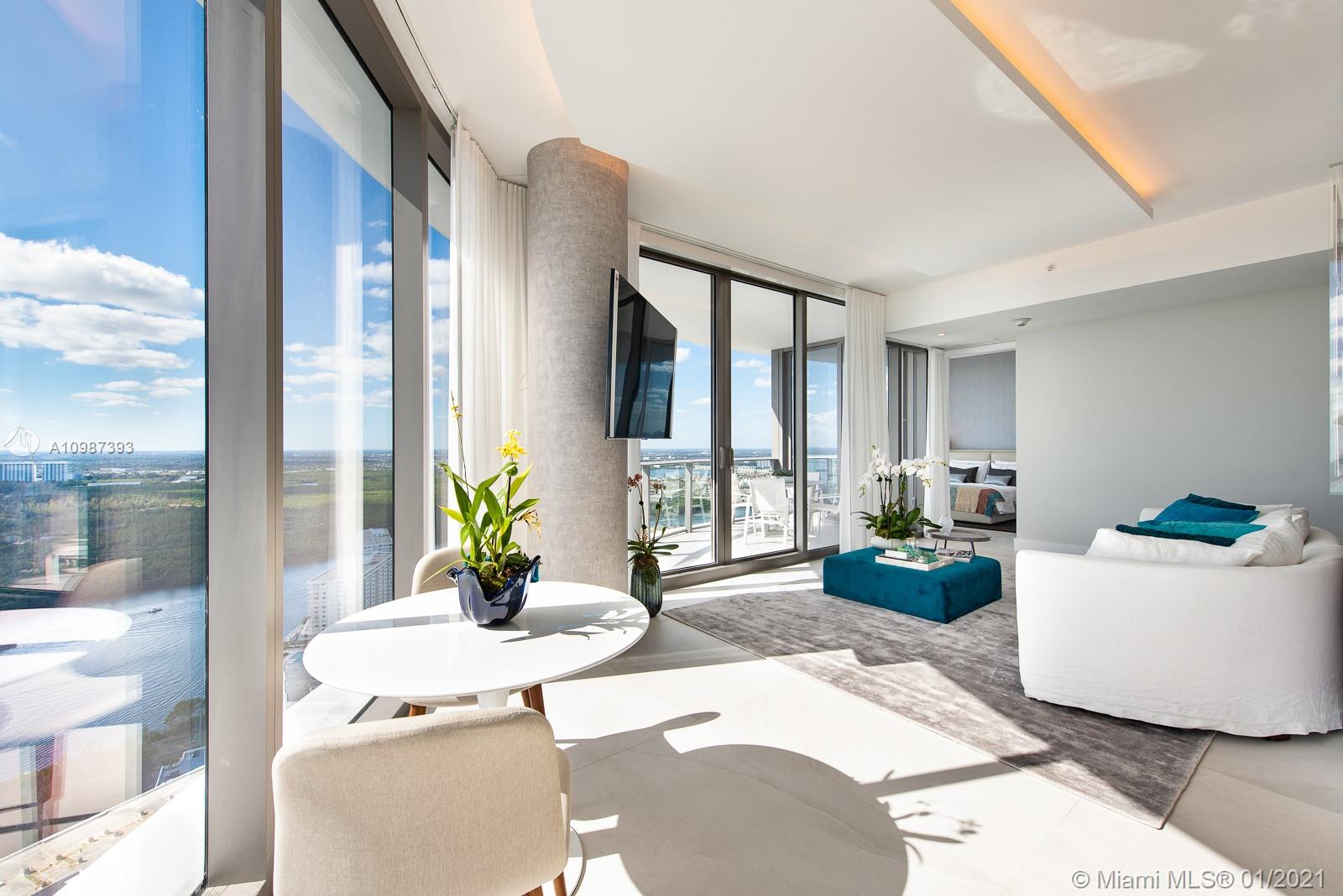 Unique super high-floor 4 bedrooms/5.5 baths with 10' ceilings wrapping around the entire South side, sweeping 180 degrees of phenomenal ocean, intercoastal and bay views from the 43rd floor, maximized by its floor-to-ceiling windows. Turn-key and ready to move in, this unit features four balconies, Gaggenau appliances, Snaidero kitchen, Ornare panels and closets, 48x48 Italian porcelain throughout and designer furniture. Sitting on 250 ft. of oceanfront property The Ritz-Carlton Residences Sunny Isles Beach was designed by world-class architectural firm Arquitectonica and interiors by Michelle Bonan. Building amenities include 2 pools, fitness center, spinning room, pilates room, spa, beauty center, restaurant, pool and beach service, concierge, guest suites and more! A must see!