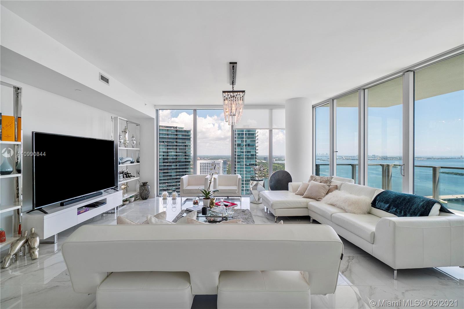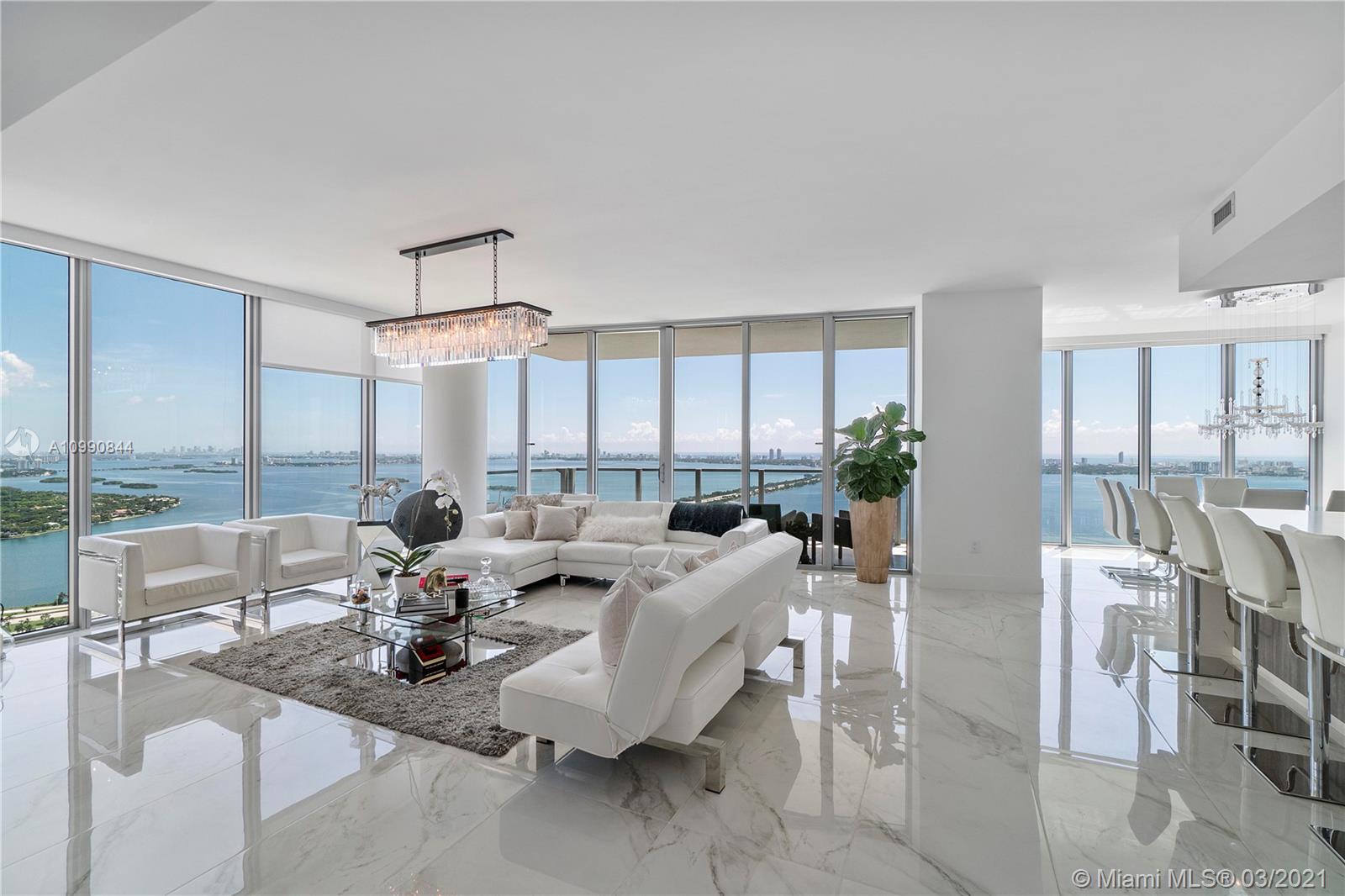 Two floor plans combined into one beautiful masterpiece, completely upgraded with magnificent views from the gorgeous Biscayne Bay Line from each room of this impressive corner unit. Very unique large condo with 4 bedrooms + den, 5 full bathrooms corner unit with 3,191 sq. ft of living space. You'll enter this magnificent apartment from a private keyed elevator. Marble and porcelain flooring throughout, custom lighting, built out closets, electric window treatments, Miele appliances, and two assigned parking spots. Centrally located in the Edgewater district close to highways, Design District, Wynwood, Miami Beach, Downtown and Brickell. Virtual Tour available.