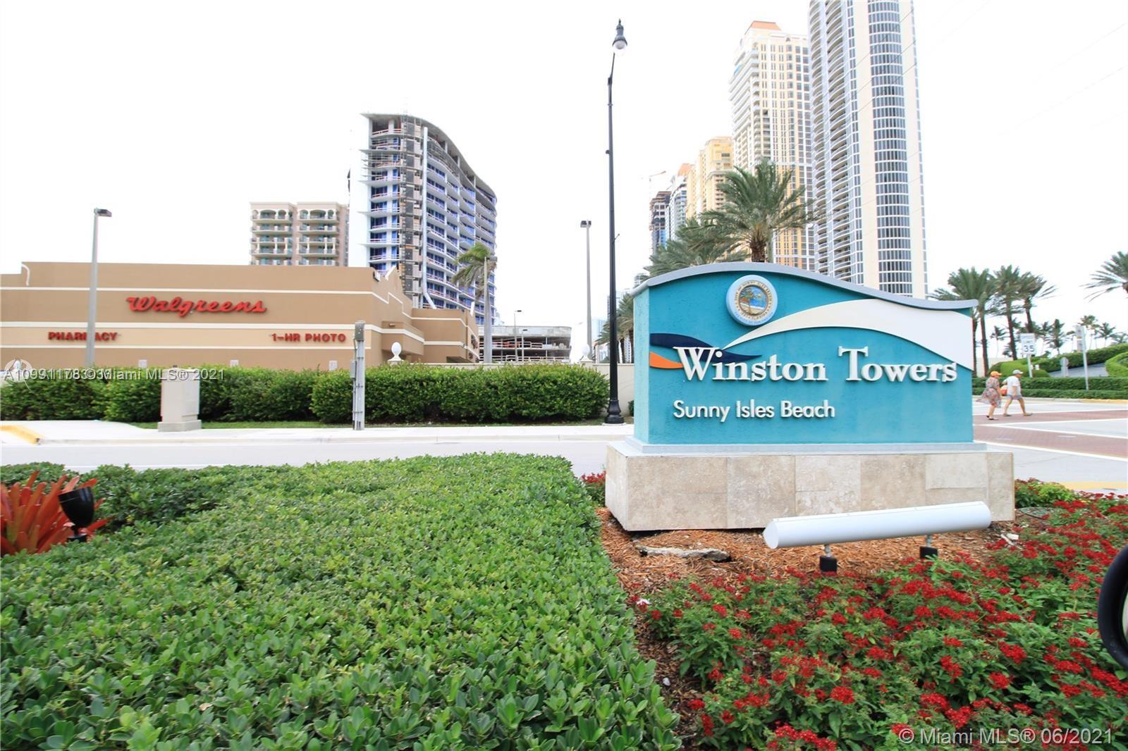 LOCATION, LOCATION LOCATION!! AMAZING OPPORTUNITY TO BE IN THE HEART OF BEAUTIFUL SUNNY ISLES BEACH, WINSTON TOWERS(600), STEPS FROM THE BEACH, RESTAURANTS, PARKS, AND STORES. 2BED/2BATH SPLIT DESIGN UNIT. PERFECT FOR INVESTORS OR TO LIVE IN. ,FULL SERVICE BUILDING WITH GYM, POOL AND BBQ AREA, AMPLE BALCONY, WASHER/DRYER INSIDE UNIT, SECURITY 24HRS., ASSIGNED COVERED PARKING, SAUNA, TENNIS COURT. CABLE & INTERNET/WIFI, TOTAL APPLIANCES & A/C REPAIR /SERVICE CONTRACT INCLUDED IN THE MONTHLY MAINTENANCE, TWO HUGE WALK-IN CLOSETS, A LOT OF STORAGE SPACE. WALKING DISTANCE TO THE BEACH, RESTAURANTS, PLAYGROUND, BEST SCHOOLS AND SHOPPING.