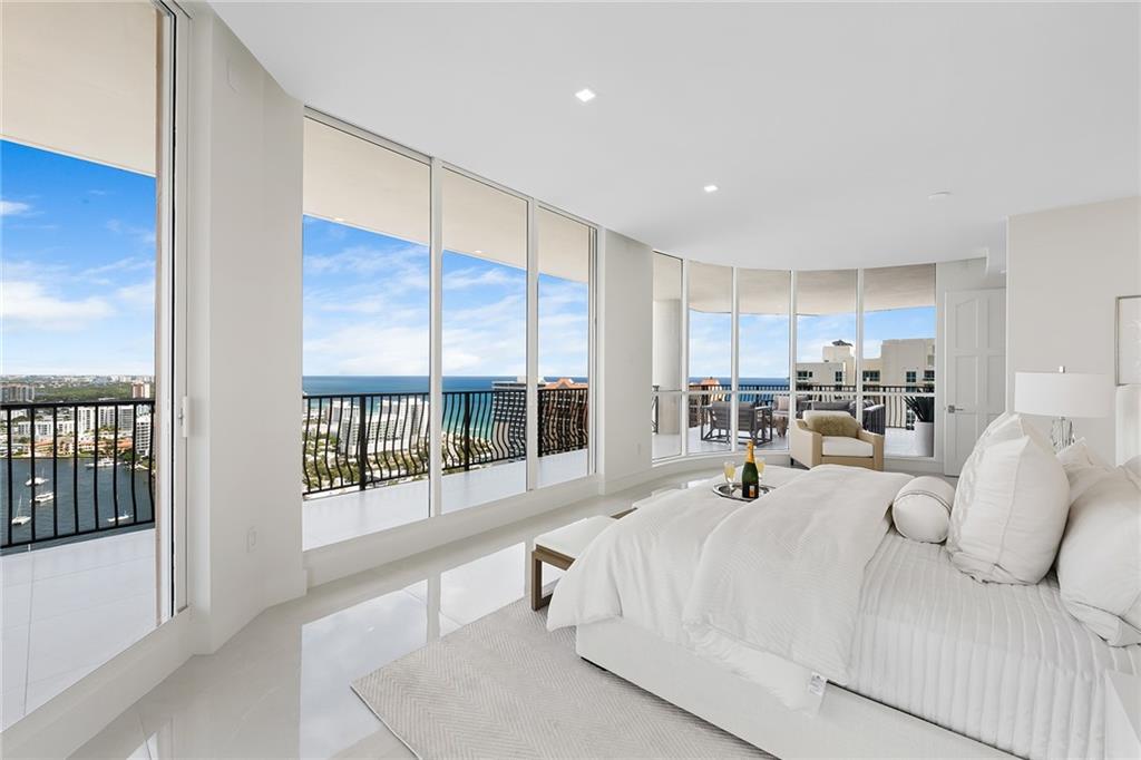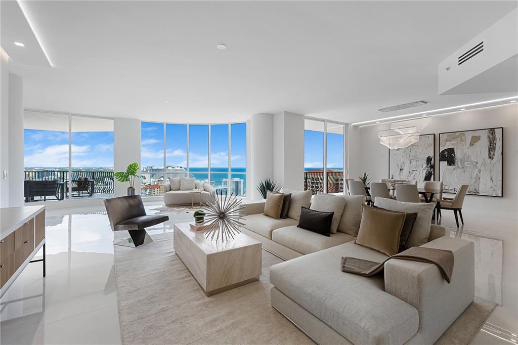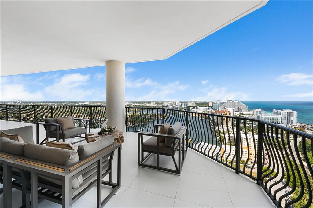 Rarely available & highly desirable NW corner Penthouse w/10’ ceilings, floor-to-ceiling glass busting spectacular 180°views of ocean,skyline,city &Intracoastal.This completely renovated 29th fl.residence offers 3200SF open floor plan w/2Beds+Den,3.5Baths residence.Master suites includes 2 separate his & hers Baths and 2 extra large walk-in closet.Incredible oversize 1200FT wraparound terrace is perfect for outdoor living & entertainment. Direct elevator access from garage into a private foyer of the residence. The best location in Fort Lauderdale just steps to the beach,water taxi,marina,shops & restaurants. 2 garage parking spaces,24hr. security,gym,steam & sauna room,heated pool,Jacuzzi,outdoor grill area,billiards,club room,library,bike storage,car wash & more.Pet friendly building!