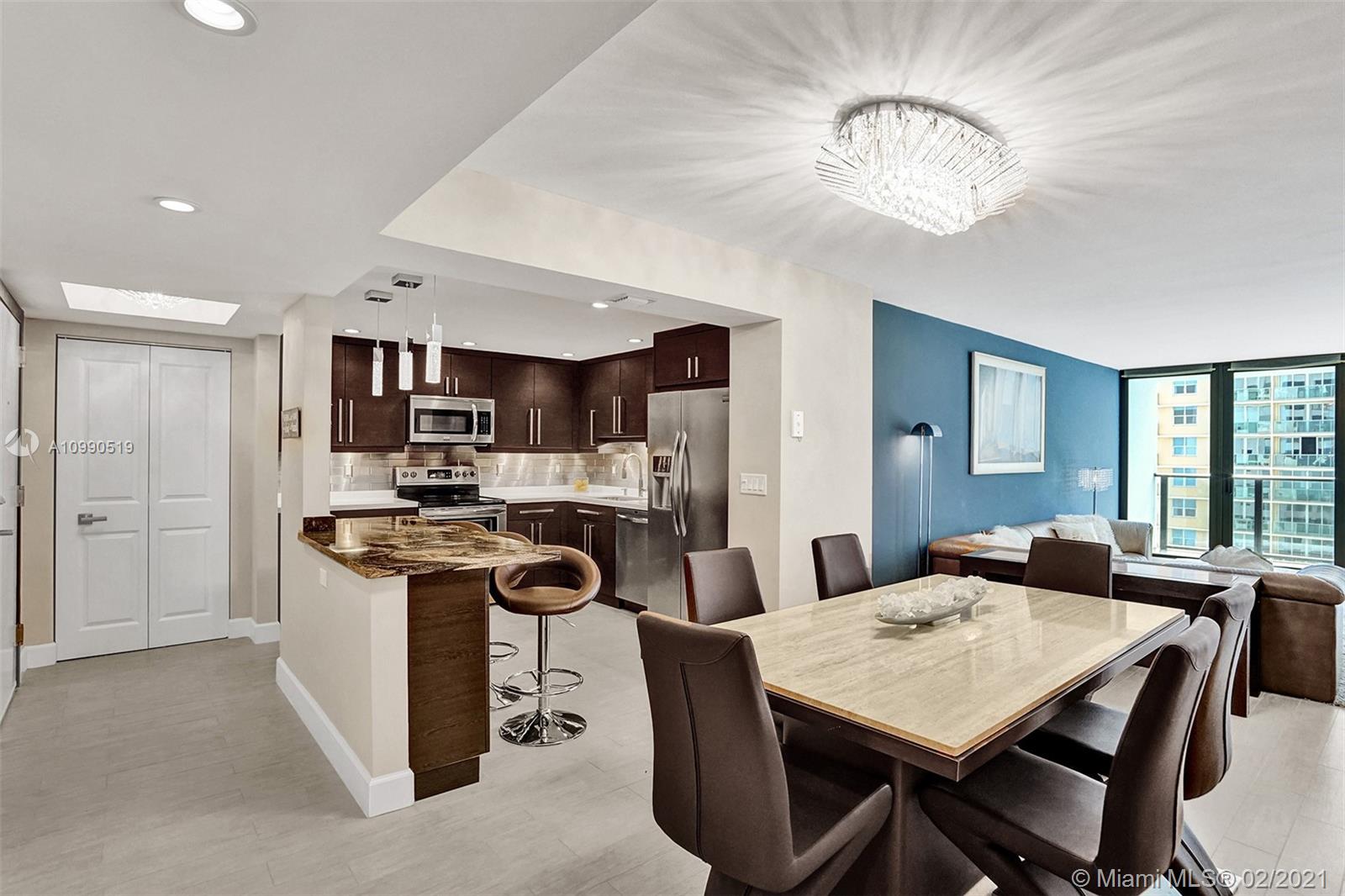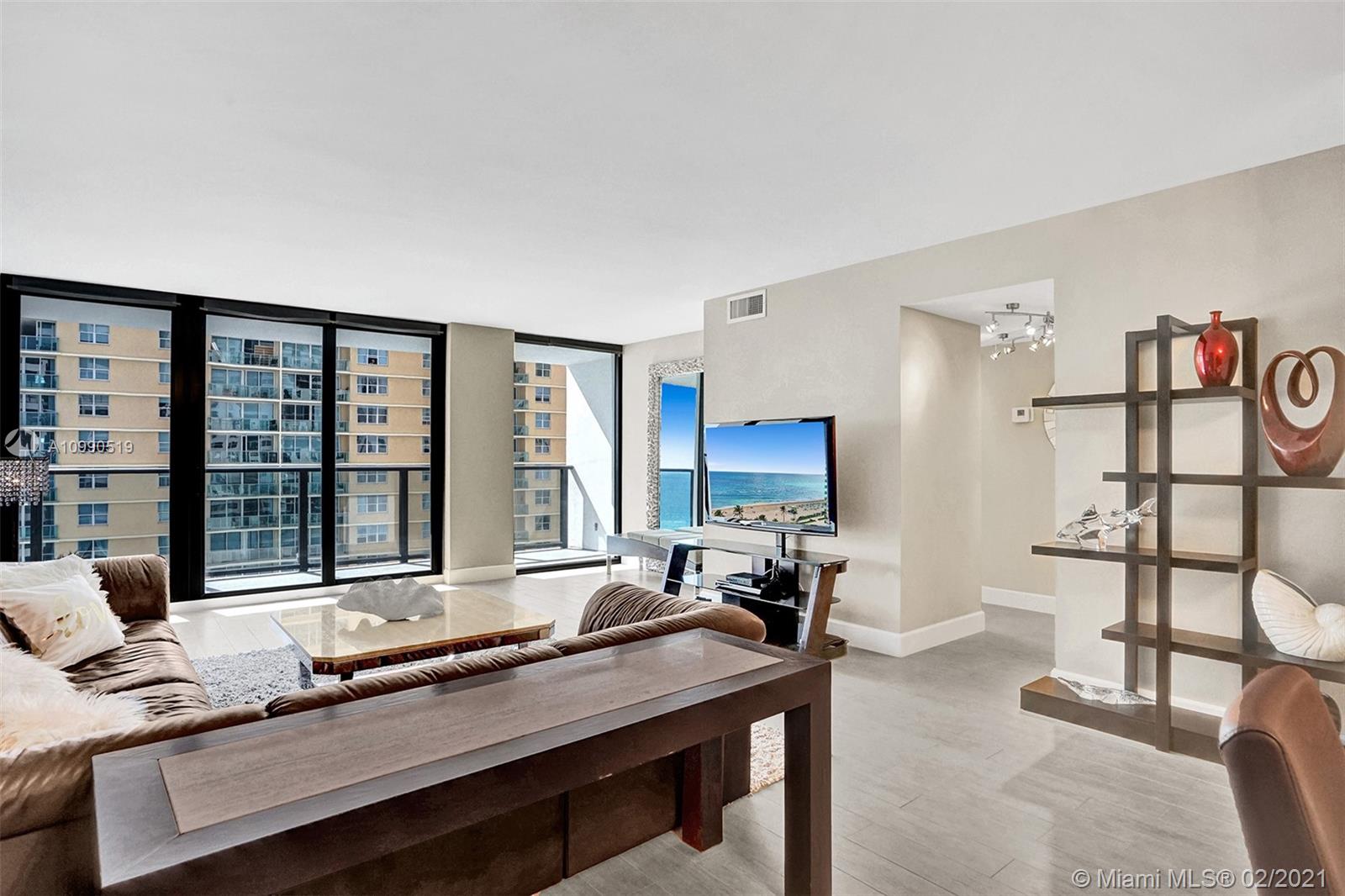 Indulge in a Breathtaking direct ocean and city view from this completely remodeled 2 BD residence. New open modern kitchen will be perfect to entertain your guests, unique counter-tops & SS appliances. Residence features impact windows, glass railings on the large balcony, tile floors, spacious Bathrooms. Building was recently remodeled. Enjoy new modern lobby done by famous Steven G Interiors. World Class amenities: 2 heated pools, Gym, sauna, billiard, business ctr, yoga/water aerobics classes, umbrella/beach chair service, restaurant. Rent once per year for minimum 120 Days