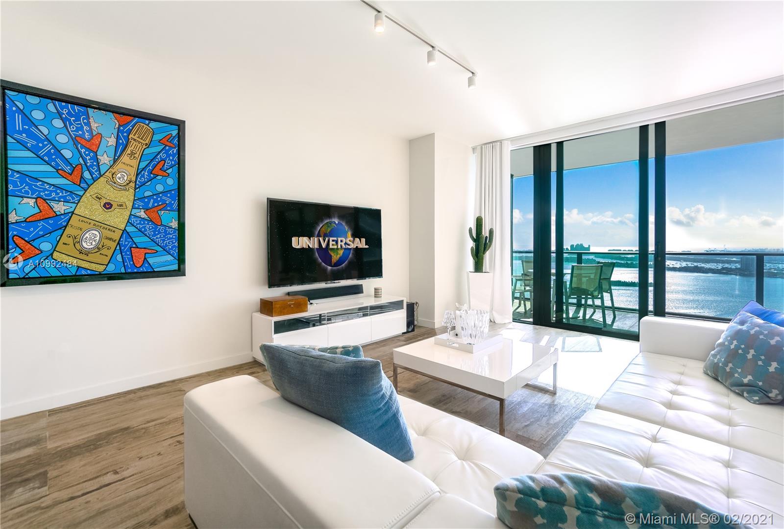 Direct breathtaking water views! Private elevator/Foyer. One Bed + Den.Fully upgraded property decorated by an interior designer. Huge Terrace with ocean views. Built-in closets, LED lighting. Window Treatments roller shades & blackouts in bedroom installed. Immaculate conditions / Move -in ready and available immediately.Paraiso Bay resort with luxurious and State Of-Art amenities: Bowling, putting green Fitness center, Spa, Steam Sauna,Wine cellar, cigar lounge, theater room, two tennis courts, 100 feet diameter swimming pool,24-hr concierge/valet service. Located in the Edgewater neighborhood just minutes from the design district, Wynwood, Brickell, restaurants, entertainment,beaches and International Airport.