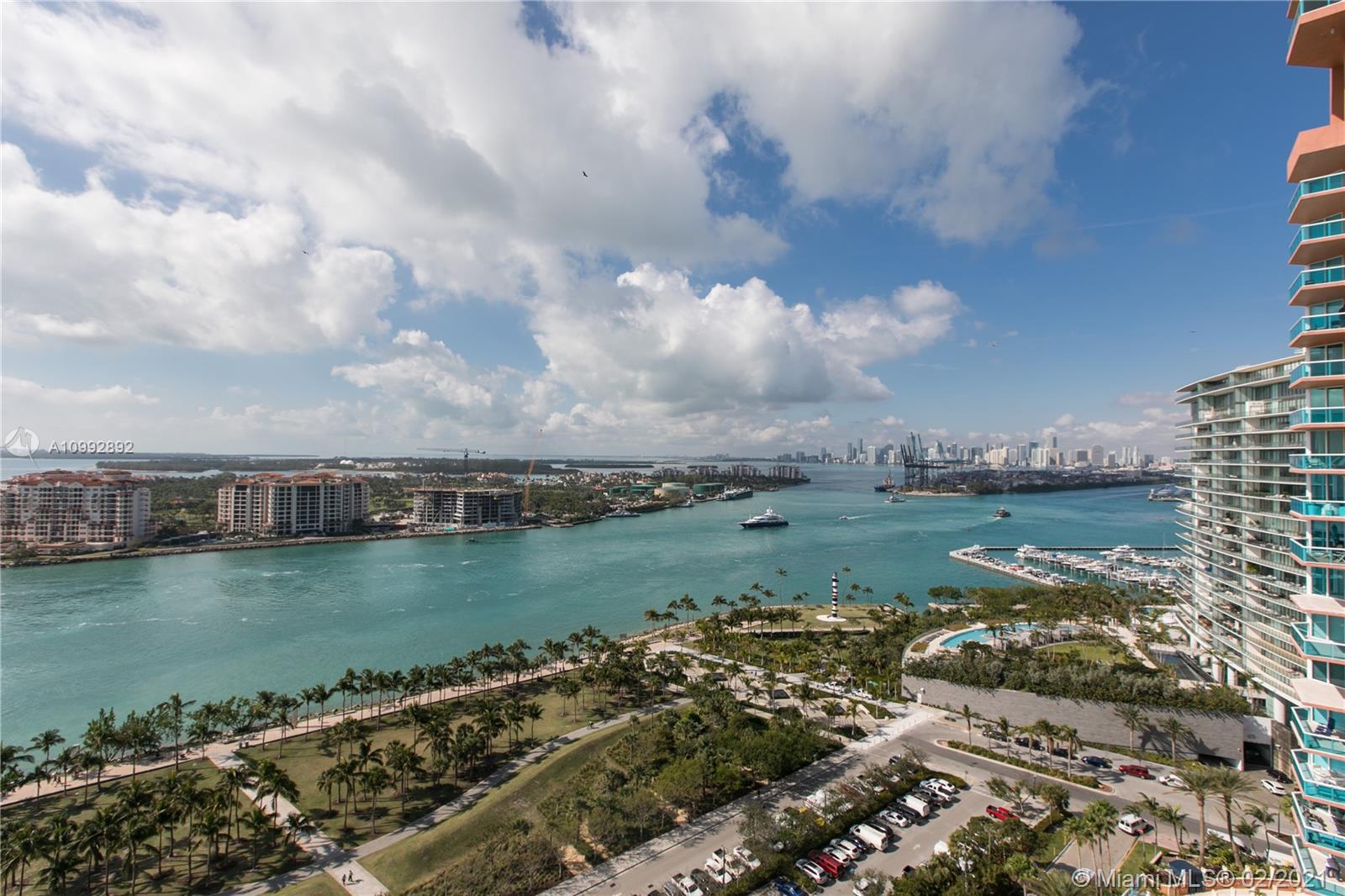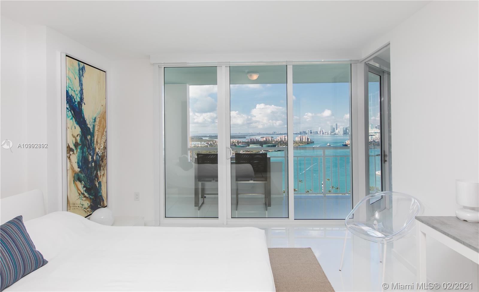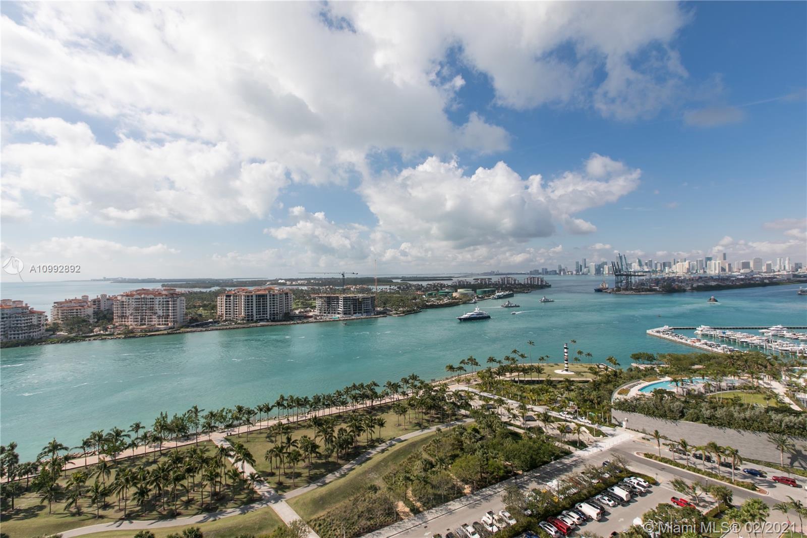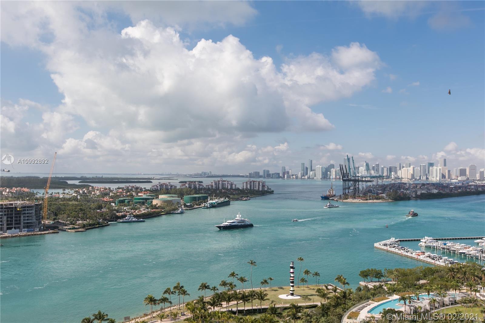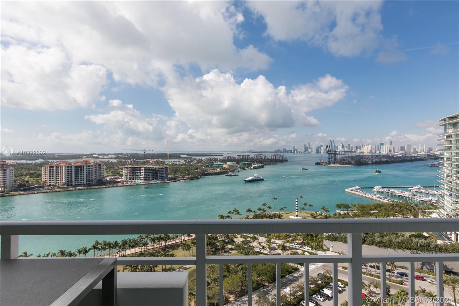 One of a kind renovation to create 2 BR, 2 full baths. Unit has been reconfigured to maximize living space and views. White glass marble floors throughout. Open living and kitchen area. Kitchen features Miele and Wolf appliances. Floor to ceiling impact windows with extended private balcony on the highest non penthouse floor. Magnificent open views of Govt Cut, Ocean, Fisher Island and the Miami skyline. All assessments paid by Seller. Must see to appreciate.