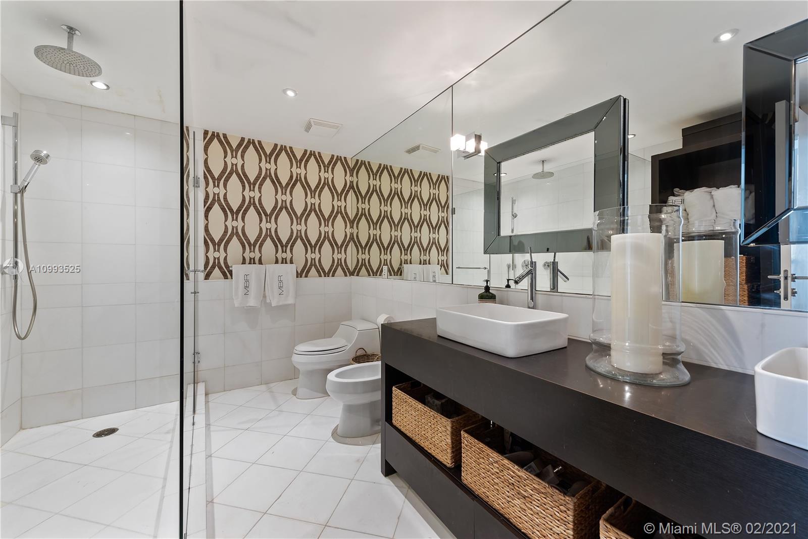 Impeccable 3 bedroom, 3 bathroom corner unit at the south tower of the exclusive Bentley Bay condo. Unit features an expansive wrap-around terrace with panoramic views of Biscayne Bay and the Miami Skyline, 3 generous bedrooms all with bay views and en-suite bathrooms and closets. Large living and dining spaces, open chef's kitchen with subzero appliances, a breakfast terrace, separate laundry room and tons of natural light. Additional upgrades include custom closets, marble bathrooms and motorized shades throughout the unit. Built in 2004, the Bentley Bay Condominium is conveniently located in the heart of South Beach giving residents the relaxed and pedestrian-friendly lifestyle of Miami Beach while offering easy access to Miami via the McArthur Causeway.