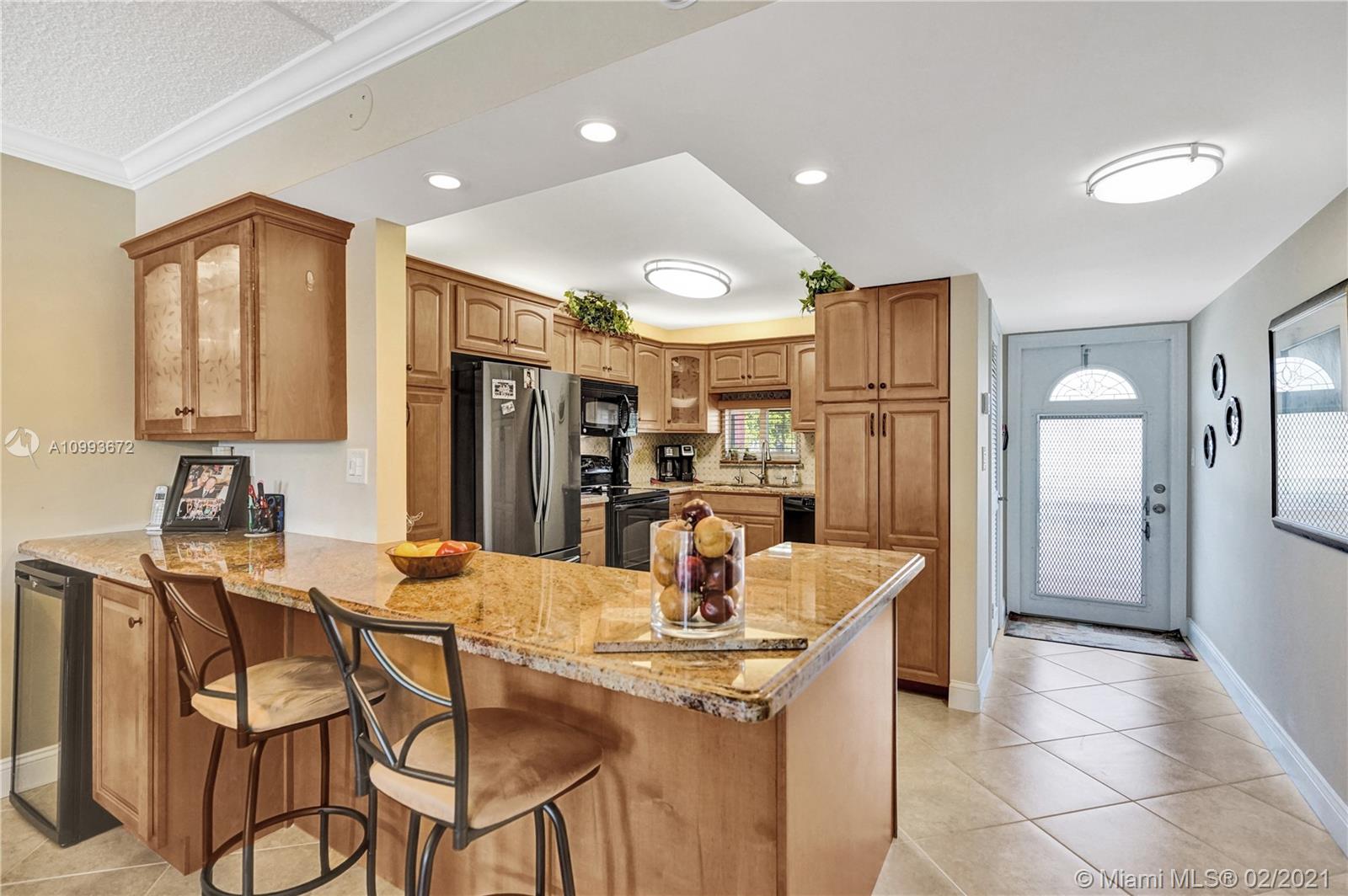 Enjoy the Hollybrook Lifestyle in this elegant fully remodeled 2 bed/2bath unit. This 55+ community is a golfers dream. The home features fully upgraded kitchen with Granite counter tops, Shaker cabinets and spacious pantries. Including Stainless Steel appliances, wine cooler, crown molding, beautifully upgraded bathrooms, Murphy bed in 2nd bedroom and much more. Enjoy the view in this lake front property with screen balcony and worry free, hurricane impact windows and doors. Amenities include FREE two 18 hole golf courses, heated swimming pools, state of the art fitness center, restaurant, club house, library, tennis, pickle ball, bocce ball, shuffleboard and more! This is pet friendly community with 24 hour security, manned gate. Do not miss the opportunity.