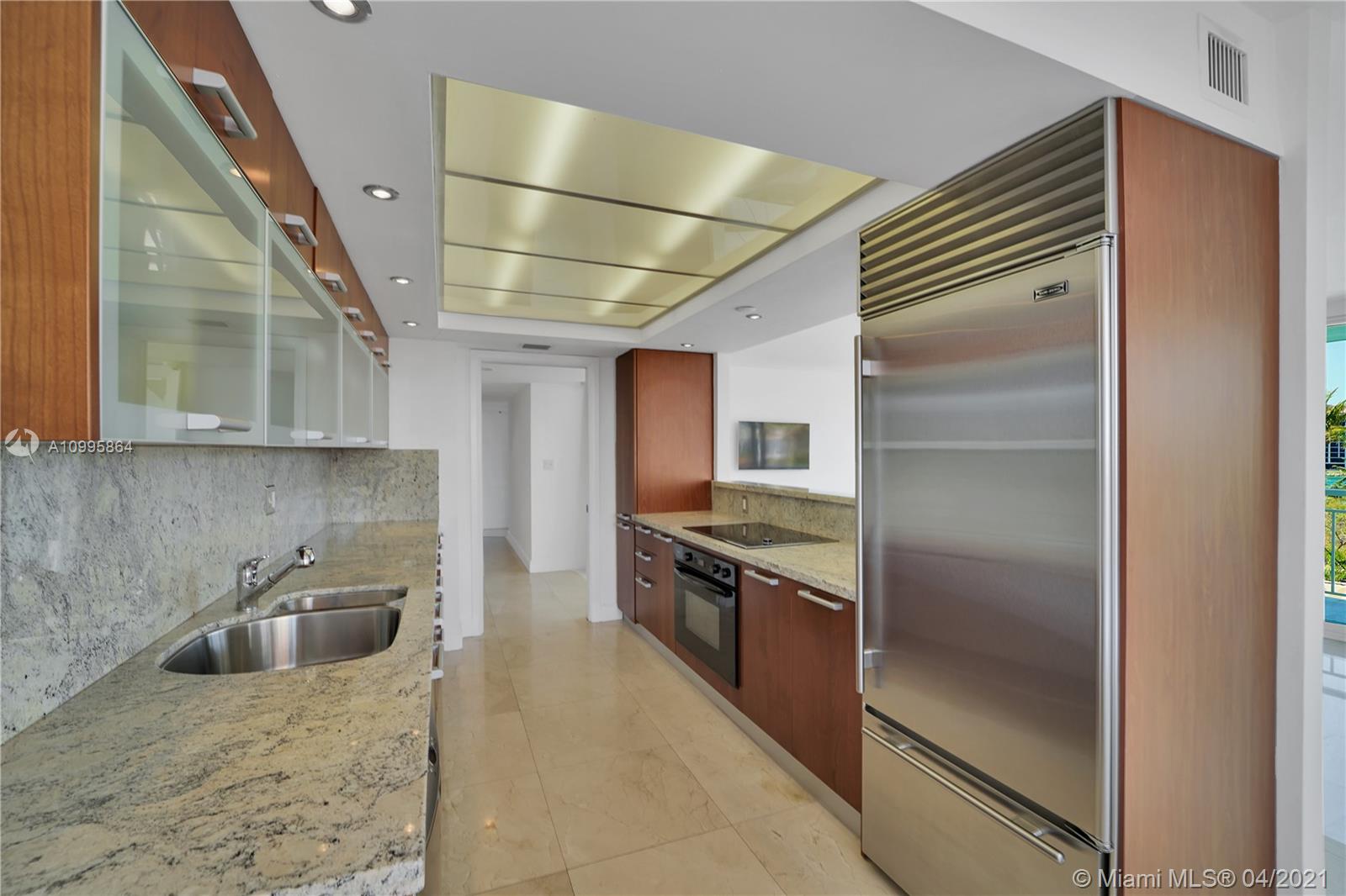 2 Bedroom 2 Bath corner unit. Renovation included IMPACT GLASS floor to ceiling windows in all rooms. Marble floors throughout living/dining area and ceramic "wood" floors in the bedrooms. Kitchen with breakfast nook has custom cabinetry with Sub Zero and Bosch appliances. Guest bathroom features walk in shower. Unit has a RARE balcony that wraps around the entire unit with access to all rooms. The building recently completed the renovation of the resident hallways. The pool and gym renovation are in the final phase of completion with an expected March completion date. All assessments have been paid. South views of Govt Cut and pool deck. Easy to show