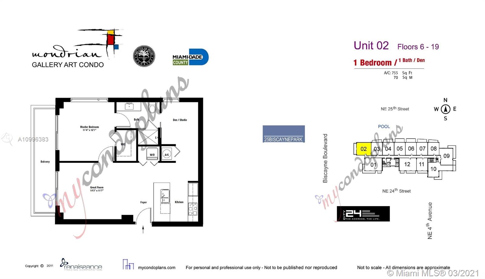 Spacious and bright CORNER 1 bedroom plus Den (with window) unit conveniently located in the Edgewater District with easy access to beaches, airport and main expressways. Walk to shops and restaurants. Midtown Mall and Performing Arts Center are nearby. Unit is located at the end of corridor having only one wall that adjoins another unit. West, north and south city views. Tiled throughout. Stainless steel appliances and washer/dryer inside unit. Large balcony for sunset enjoyment! Hurry, won't last long!