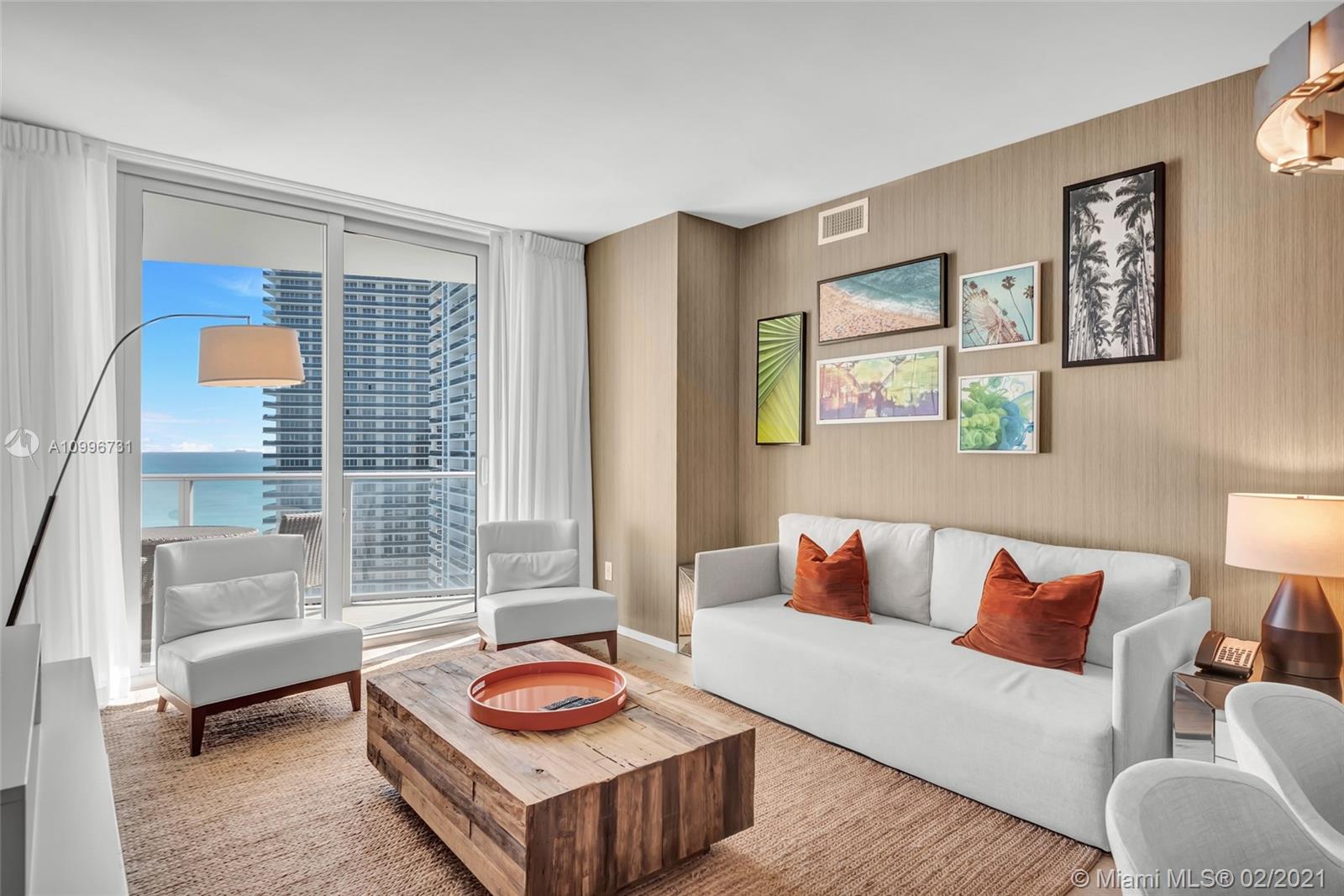 Unit 2003 features breathtaking Ocean & Bay views, 2 BED / 2 BATH, 1136 SQFT of livings areas perfect for family vacations and entertaining. Unit comes Fully Furnished with washer & dryer as a turn key solution for investment in rental income, perfect for investors looking to maximize returns through AIRBNB / VRBO or comparable. Also possible to be rented through hotel program. HYDE BEACH RESORT & RESIDENCES offers luxury amenities with Rooftop, pool, restaurant managed by ZUMA Miami, bar with terrace seating, Japanese eatery, gym & Luxe Spa, coffee shop, beach service and more. Maintenance Includes electric, cable and internet. Easy to show! Nightly rental allowed! Will not last! Call Listing Agent for showings and information.