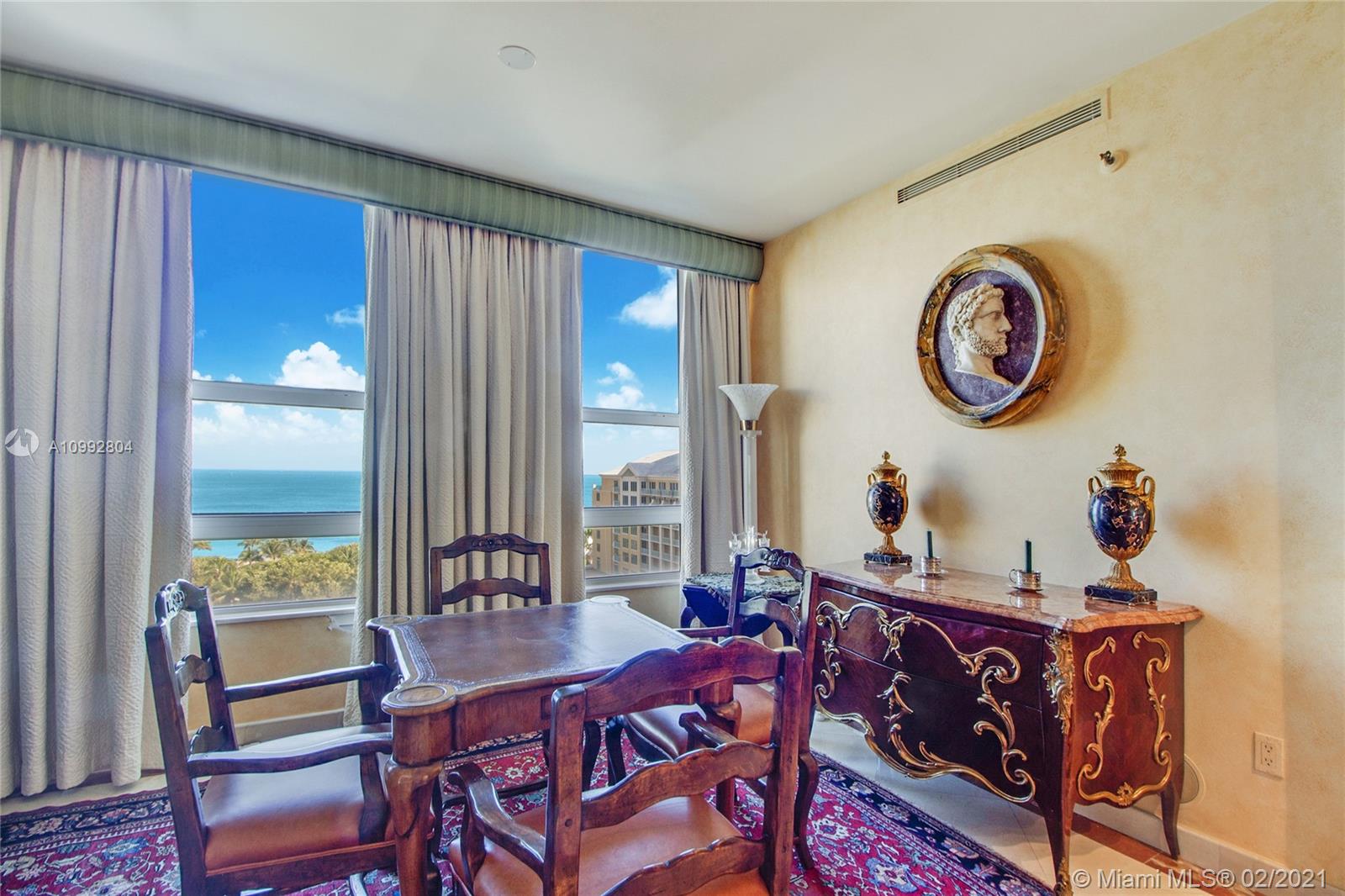 BEST LINE IN THE BUILDING!! Breathtaking views overlooking the ocean. A private elevator opens to a charming foyer, composed with a spacious family room, dining room, & breakfast area with a large, functional kitchen and a separate laundry room with a service entrance. Unit has 3,820 sq ft with 3 bedrooms and 3 1/2 baths, spacious master bedroom with his/her walk-in closets, The master bathroom is pure luxury, made with beautiful marble. This palace in the sky has two balconies facing east and south/West. Valet parking, 24hr concierge, a private beach access & prime amenities. Live in the gem of Key Biscayne!