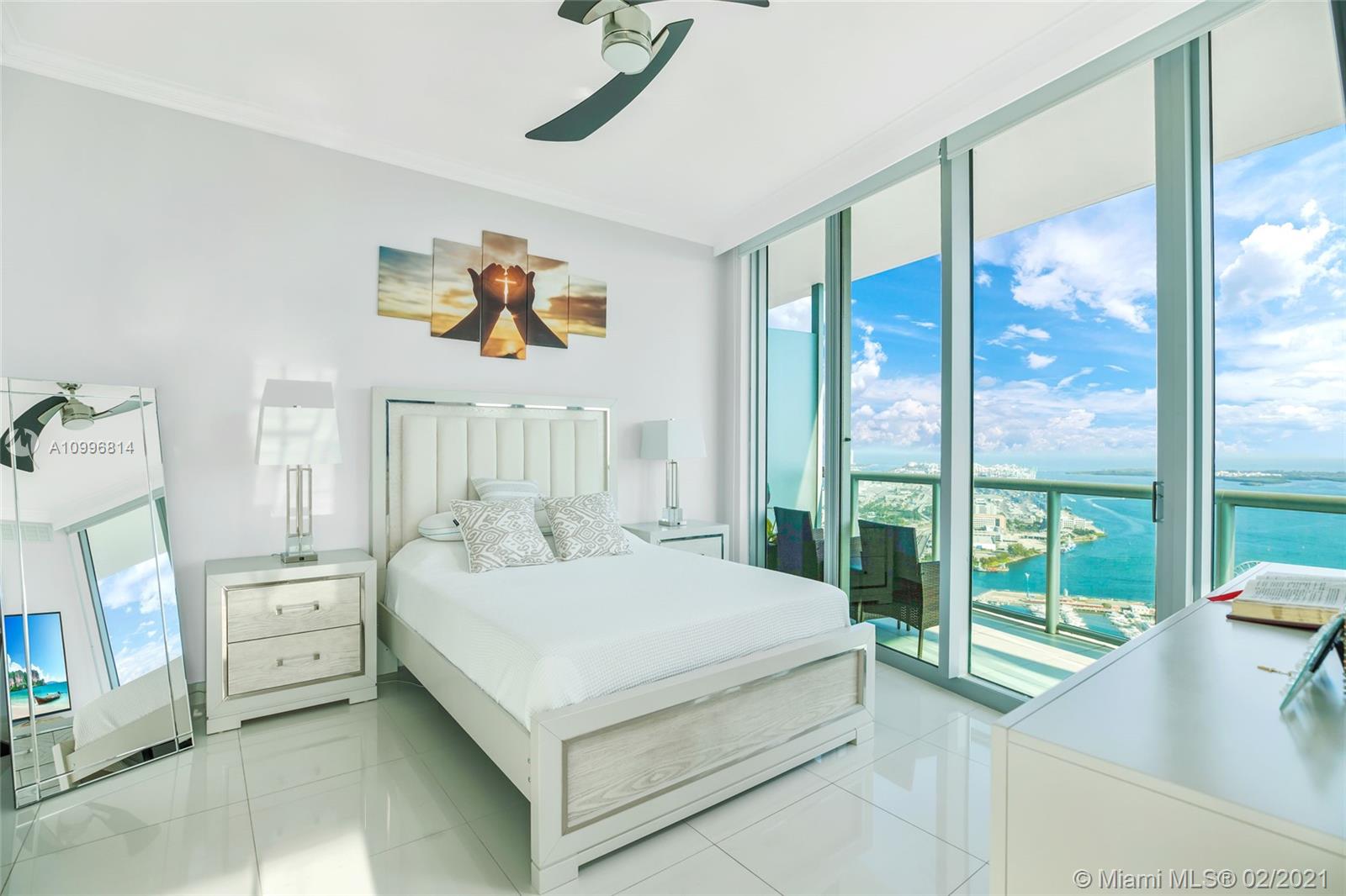 Welcome to this gorgeous condo in the 01 line of the 53rd floor of Marina Blue. This condo looks over the Miami skyline with direct ocean views of Biscayne Bay, Miami Beach, and the terrific city lights of Brickell and the Miami World Center. Line 01 is located at the southeast peak of the building, making it the most desirable in the building. This unit was completely gutted out and features newly-installed crown molding throughout. It’s equipped with a fully renovated kitchen with Bosch appliances, quartz backlash, new cabinets, one $1,500 Woodbridge toilet bidet in the master and the other bathroom has a new regular toilet, built-in closets, all-electric switches, and newly-installed custom lighting. This residence is one of a kind, you'll be proud to call this home.