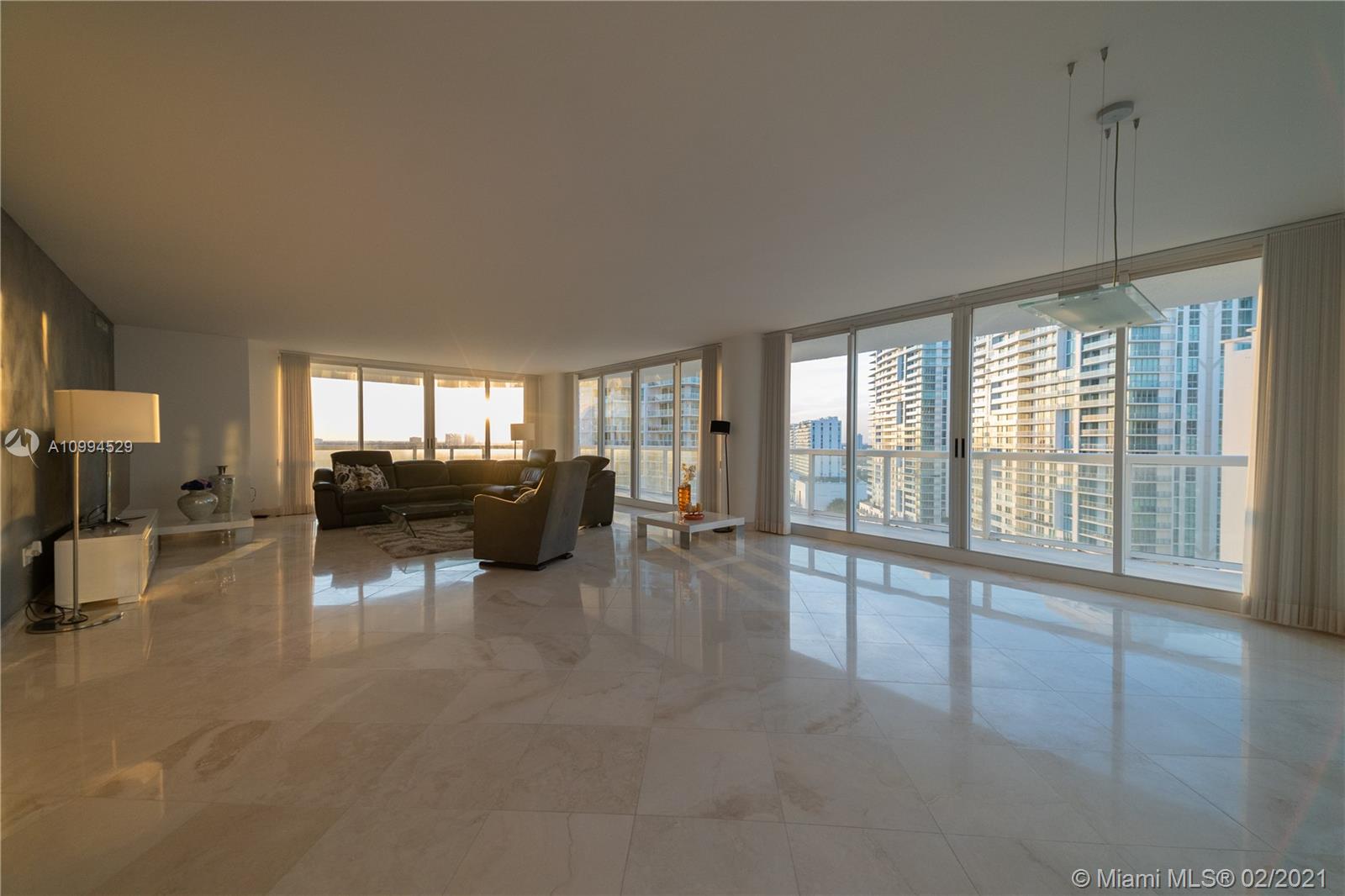 180 degree views! In the morning, you can drink your coffee watching the sunrise on the East Ocean View and in the Afternoon you can enjoy the panoramic Sunset from the Master Bedroom or your terrace! You have Ocean Access and amenities through your Club House. If you want Space, view and Waterfront living for your money, this is your place! You are 5 minutes away from Bal Harbour Shops, 5 minutes away from the Supermarket and Restaurants in Sunny Isles. You don't need to get out of your area to have an amazing time, beach, restaurants, shops!