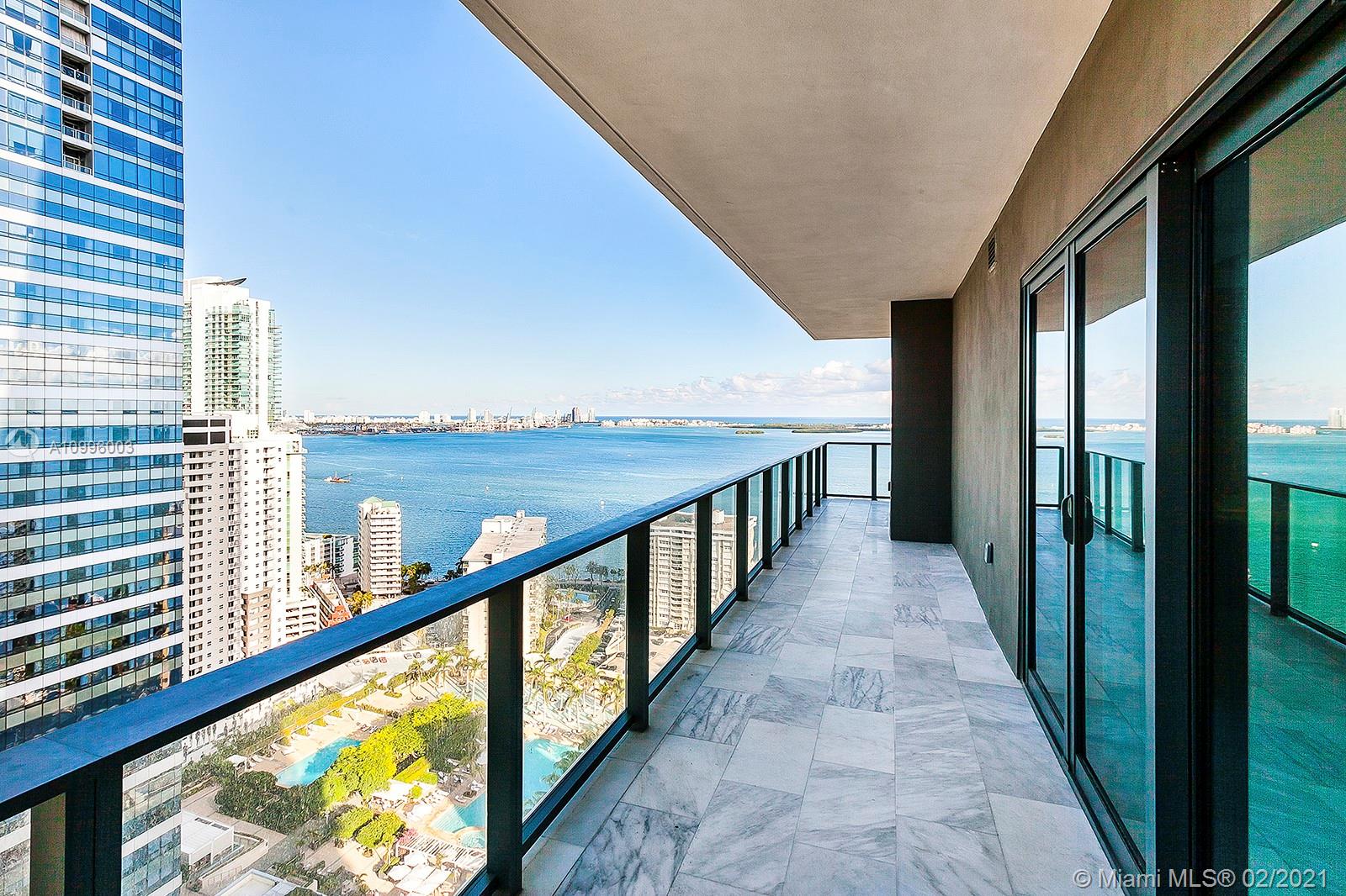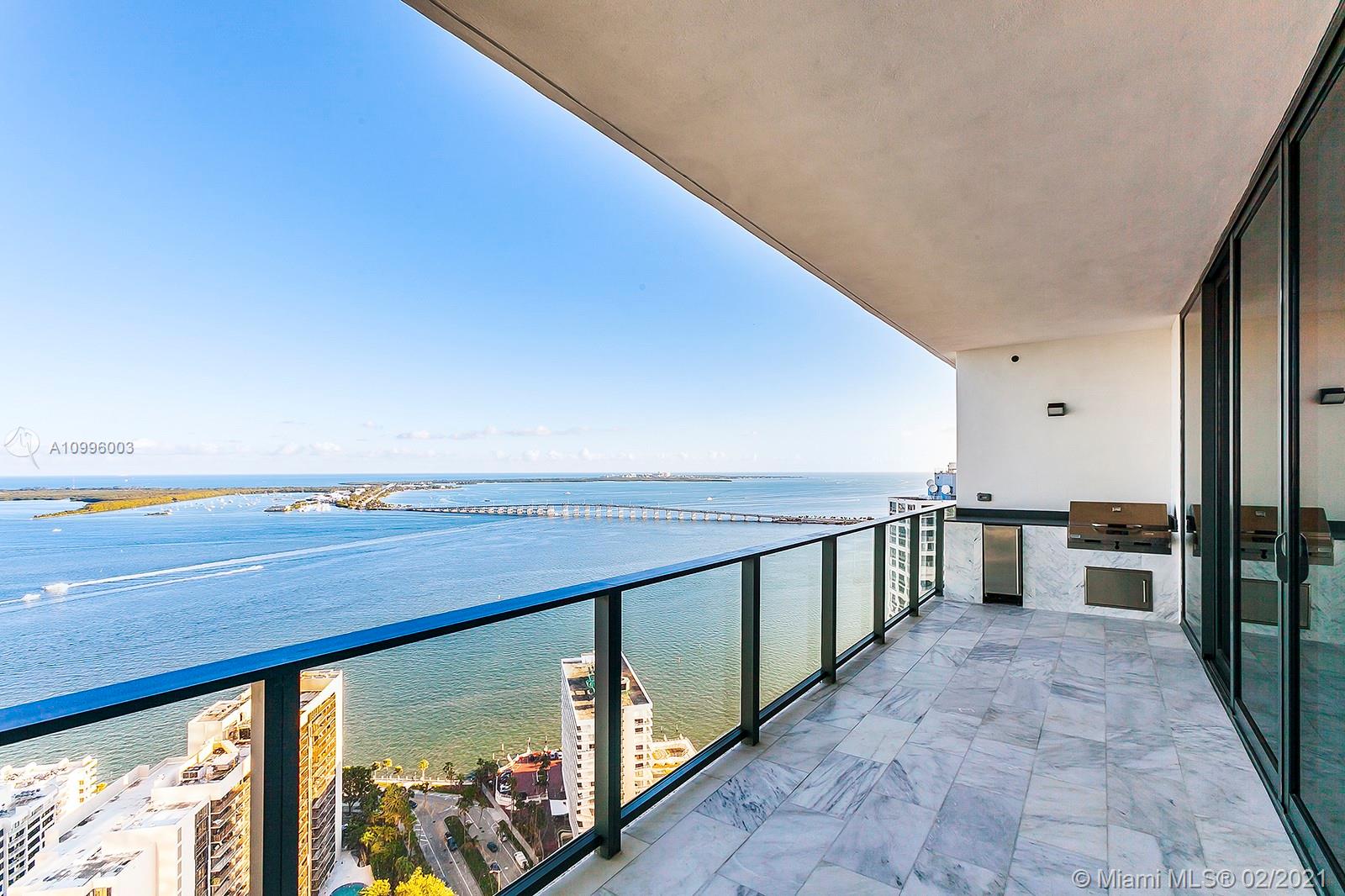 Spectacular corner unit at Echo Brickell, the most exclusive architectural high rise situated east of Brickell Ave. The unit is 2Bed / 3Bath plus DEN with amazing views of the bay and ocean. It comes with a private outdoor summer kitchen / barbecue, marble flooring throughout, Italian Glass cabinetry, beautiful marble countertops, top-of-the-line appliances just like SubZero, Wolf and Bosh, Apple Home technology just to name a few. The building has a gym and spa with breathtaking views of the bay, valet, 24/7 concierge, pet walker and an amazing pool with the best views in the area.
