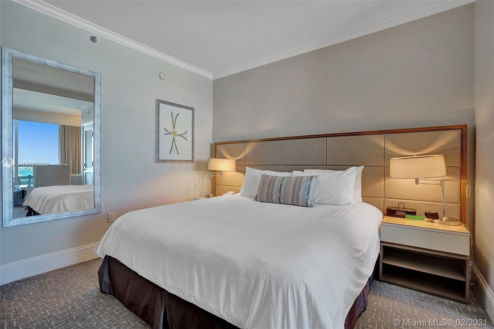 Beautiful Jr Suite w/ocean, bay & city views at Fontainebleau II. Enjoy full service, vacation-style living in a furnished turnkey unit with ample closet space and balcony. This unit comfortably sleeps four with a king bed, living area with sleeper sofa and kitchenette. Enroll in hotel rental program & receive income while away! The Fontainebleau Resort offers luxury amenities on 22 oceanfront acres including award-winning restaurants, LIV night club, Lapis spa & state-of-the-art fitness center. Maintenance includes: AC, local calls, electricity, valet + daily free breakfast in the owner’s lounge.