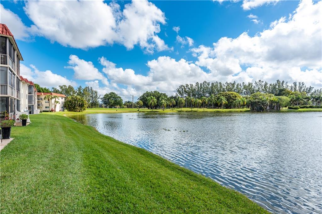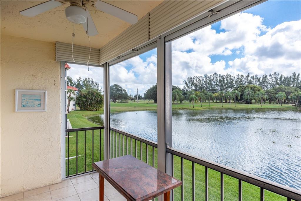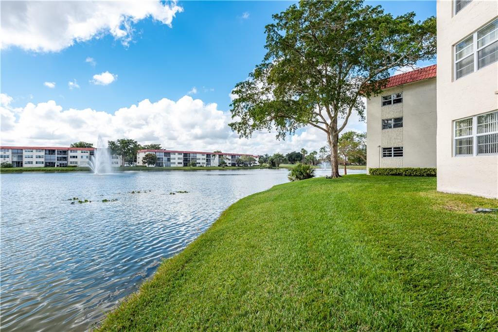 24 HOUR GUARD GATED 2BR/1.5 BA. RELAXING 18TH FAIRWAY PGA GOLF & HUGE WATER VIEWS. Kitchen updated w/ raised ceiling, granite counters + large granite top storage area, Crown Molding. Bathrooms updated w/ granite counters. Seat in Master Bath Shower w/ toe-tester. Large 2nd bedroom w/ wall to wall closet. 24 hr guard gated. Recreation Lease PAID IN FULL! FREE golf (except cart fees) on two 18 hole courses (PGA & Par3); Amenities include Restaurant, Billiard Room, Bbq/Picnic Area, Clubhouse, Courtesy Bus, Exercise Room, Heated Pool, Library, Putting Green, Sauna, Shuffleboard, Tennis, Pickle Ball, Vehicle Wash Area, Electric Car Charging Station. Close to shopping, dining & highways. 15 min. to the beach. Association says 55+ age required; MOVE into RELAXING PERFECT LIFESTYLE CONDOMINIUM.