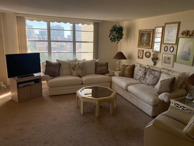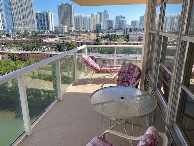 Beautiful, well maintained corner unit apartment with wrap around balcony with views of the ocean, intercoastal and the gorgeous south condo landscape of Sunny Isles Beach. Large living room, spacious dining area facing the balcony with view of the ocean. Large eat-in kitchen with breakfast/island counter, ample cabinets & large pantry closet. Huge Master Bedroom with 2 walk-in closet, vanity and large bathroom with shower/tub combo. Guest bathroom completely renovated with granite top, new shower with glass doors. Apartment is tiles & carpeted throughout. Condo has many amenities, gym, library, game room, card room with new pool & sauna almost ready. New roof, new fire system, new fob security entrance for building doors & elevators and new security cameras throughout building.
