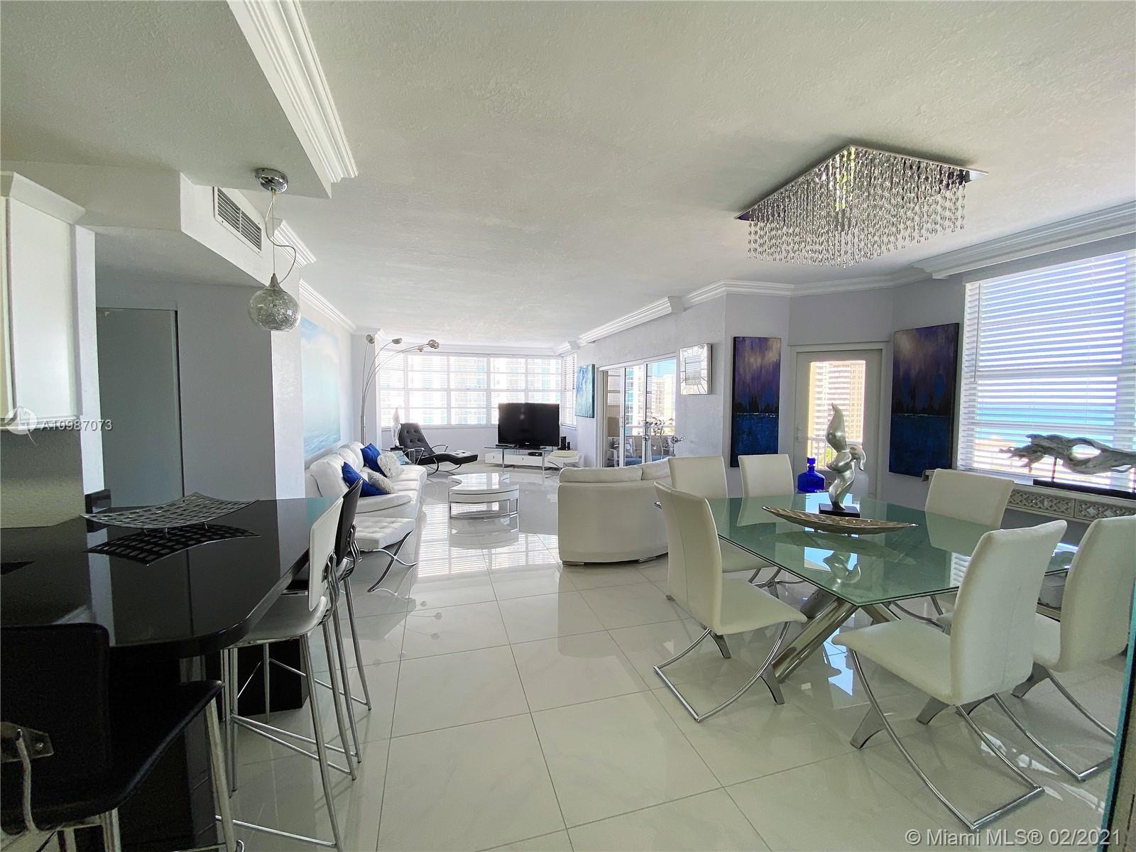 Corner unit on the ocean with spectacular views of the city, intercoastal and ocean from every room. Completely remodeled, top of the line. Resort living with 2 heated pools, 2 gyms, 3 restaurants, tennis, basketball courts, shuffle board, putting green and much more. Maintenance fee includes A/C, internet, basic cable, and all amenities. Furniture also for sale. Minutes away from Hollywood beach, Gulf Stream, Aventura Mall and major highways. Must see.