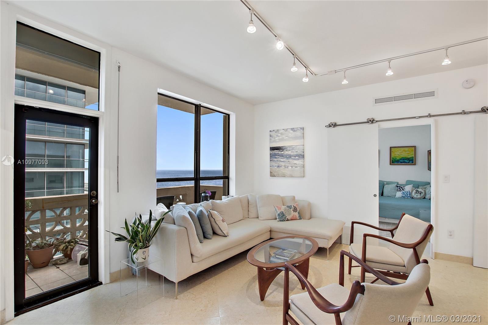 Fully Renovated and Turn Key with a Private Garage space, 10 foot ceilings, CAT-5 Wired, Two Bedroom+Den Penthouse Apartment in Bal Harbour, Enjoy Oceanfront living & the tranquility of sunrises & sunsets from the privacy of your balcony. This penthouse was gut renovated with the finest attention to details, it has lots of natural light & gorgeous views of the Atlantic Ocean & Biscayne Bay. The Plaza is located in the prestigious and secluded Bal Harbour community. Just steps from upscale Bal Harbour Shops, world-class hotels, children's park, places of worship and top restaurants. Great gym, valet, pool, beach service, and access to a jog/bike path running parallel to the ocean.